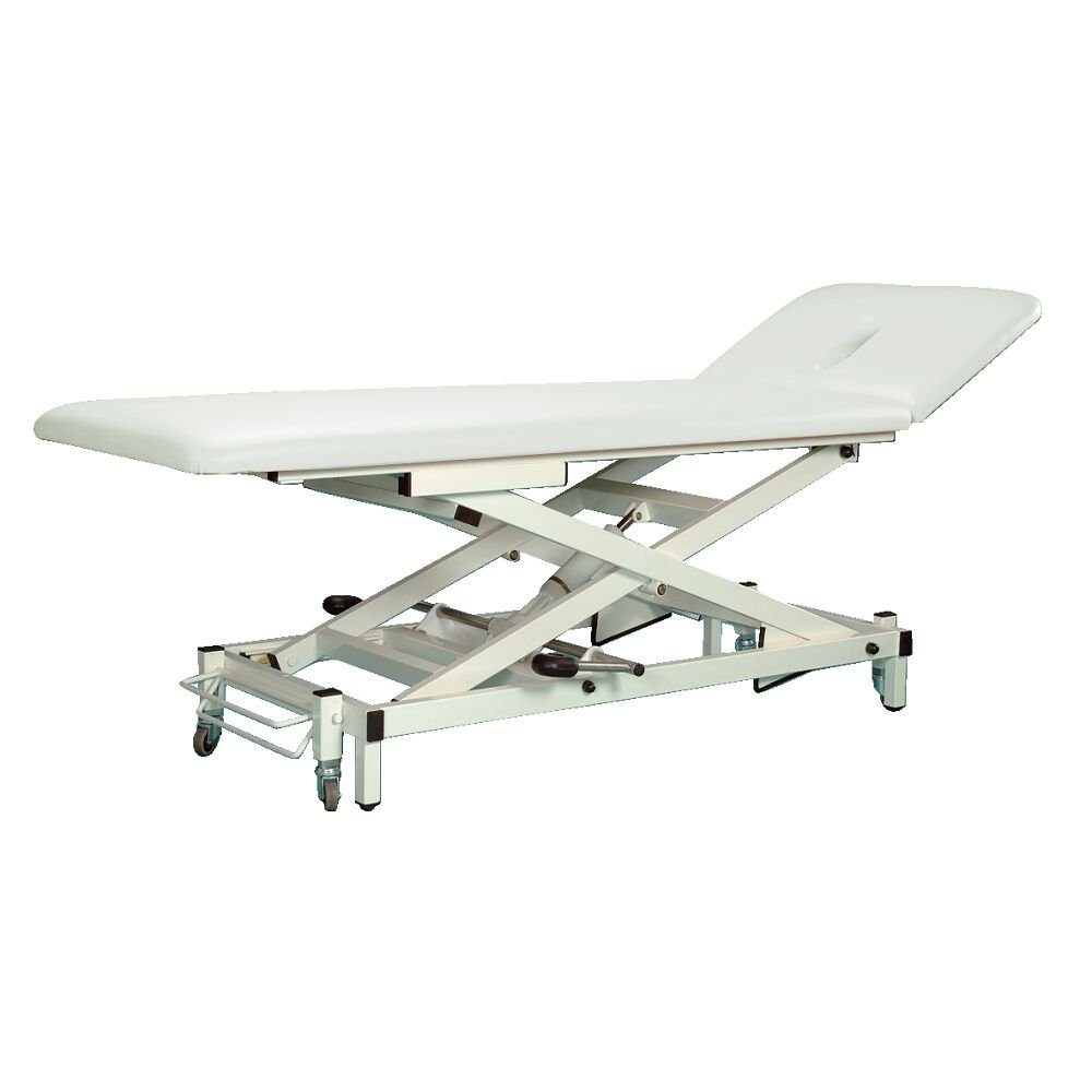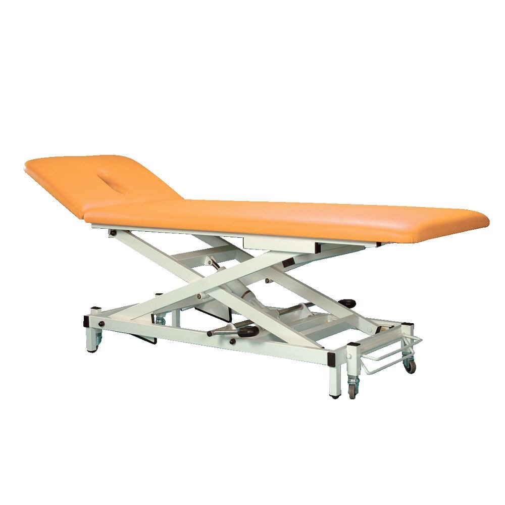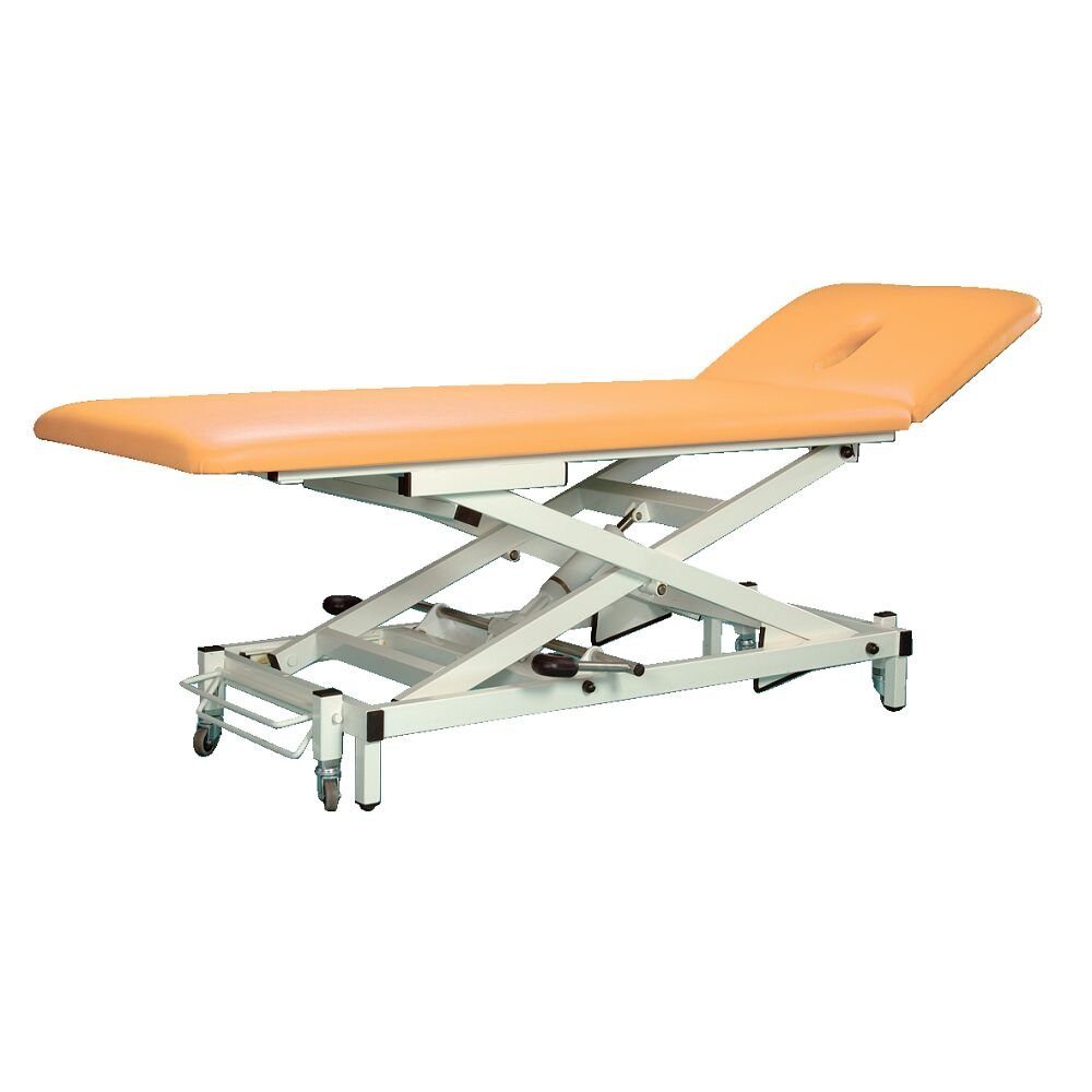 Die zuverlässige Meditech Therapieliege "Vario Nr. 1" zweiteilig von Meditech ist eine klassische Therapieliege mit hydraulischer Höhenverstellung. Dank des leichtgängigen Scherenhubsystems ohne seitlichen Versatz lässt sie sich für jeden Therapeuten und Patienten auf die optimale Höhe einstellen. Das kunststoffbeschichtete Gestell des Behandlungstischs mit zuschaltbaren Rädern sorgt für stabilen Stand. Bei Bedarf stellen Sie die höhenverstellbare Therapieliege einfach um. Auch in anderen Belangen passt sich die solide Liege genau Ihren Wünschen an: So haben Sie die Wahl zwischen zwei Polsterbreiten (65 und 80 cm) sowie einer großen Palette an Bezug-Farben. Bei insgesamt 35 Farbtönen, davon 4 Standard- und 31 Sonderfarben können Sie Ihre Vario Nr. 1 harmonisch in die Einrichtung Ihrer Praxis einpassen. Ob für Massage oder Physiotherapie – die vielseitige Therapieliege sollte in keiner Praxis fehlen.