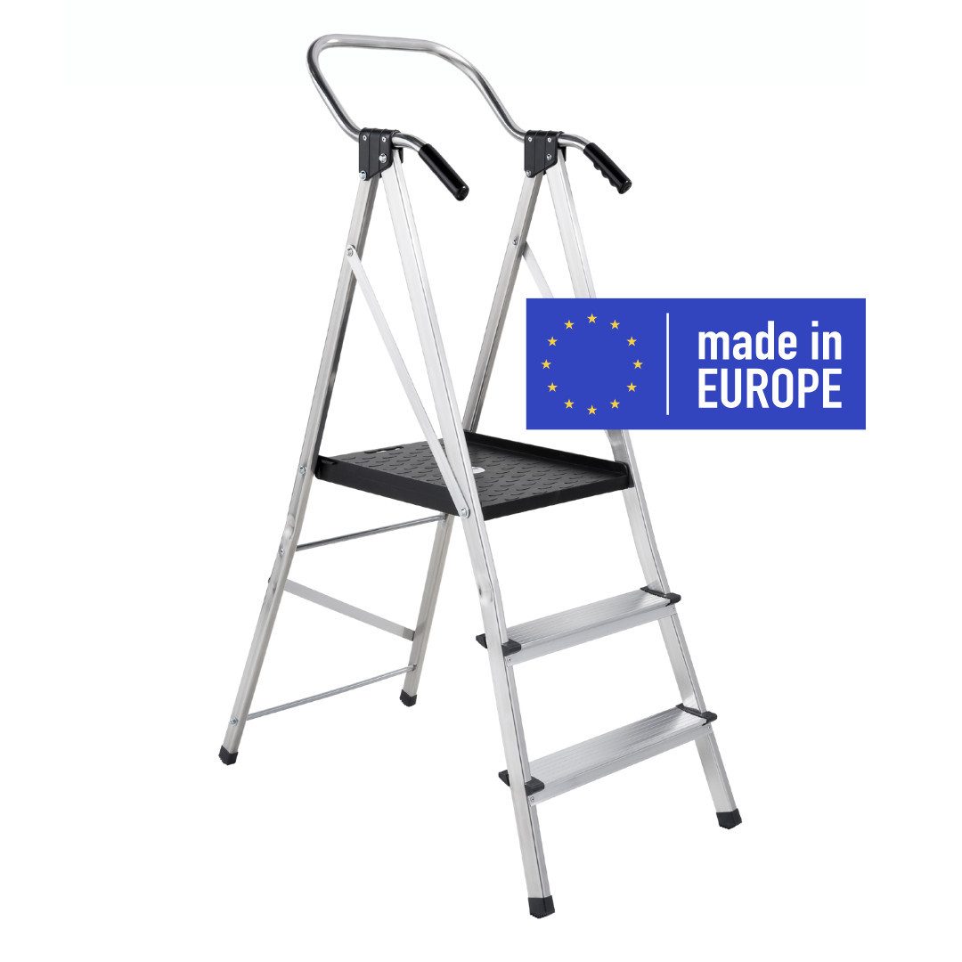 Ausstattung | Haltebügel, Fallschutz, Plattform, rutschsichere Handläufe |