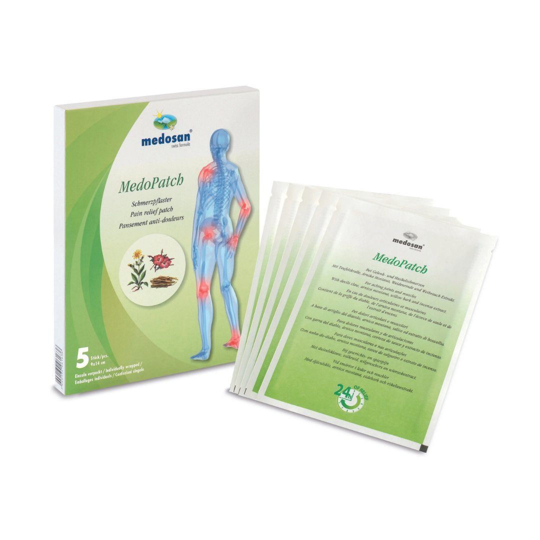Schmerzen jeder Art können die eigene Lebensqualität deutlich beeinträchtigen. Wer unter chronischen oder akuten Schmerzen im Nacken-, Rücken- oder Kniebereich leidet, der kann mit dem Medopatch Schmerzpflaster von Medosan auf die Kraft natürlicher Pflanzenwirkstoffe setzen und für wohltuende Linderung bis zu 24 Stunden lang sorgen. Das Medopatch Schmerzpflaster nutzt dafür ausschließlich natürliche Wirkstoffe: Im Gegensatz zu herkömmlichen Schmerzpflastern kommen hier daher keine künstlichen Inhaltstoffe zum Einsatz. Teufelskralle, Weihrauch, Arnika und Rinden-Extrakt der Silberweide sind die Naturstoffe, die Medopatch nutzt, um schnell und langanhaltend im schmerzenden Bereich zu wirken. Dabei ist das Medopatch Schmerzpflaster dermatologisch getestet, hypoallergen, frei von Farb- und Konservierungsstoffen sowie geruchsneutral – so können Sie völlig diskret mit Medopatch auch unter der Kleidung aktiv Schmerzzustände behandeln und von der raschen Linderung profitieren. Bei welchen Beschwerden kann das Medopatch Schmerzpflaster eingesetzt werden? Das Medopatch Schmerzpflaster kann bei ganz unterschiedlichen Beschwerdebildern zum Einsatz kommen. Dazu zählt vor allem: Muskel- und Gelenkschmerzen rheumatische Beschwerden Sporttraumata Nackenverspannungen Schmerzen im Lendenwirbelbereich “Schmerz-weg-Pflaster” mit der Wirkkraft der Natur Medopatch setzt bewusst auf die Kraft natürlicher Pflanzenwirkstoffe und nutzt die wohltuenden Eigenschaften von natürlichen Schmerzkillern. Effektiv kombiniert in einem innovativen Anti-Schmerz-Pflaster, um gezielt dort zu helfen, wo es weh tut. Всеn voran Teufelskralle (harpagophytum procumbens) und Weihrauch (boswellia serrata extract). Gerade wegen ihren entzündungshemmenden Eigenschaften sehr geschätzt, denn ihre Inhaltsstoffe können erwiesenermaßen direkt in Entzündungs- und Schmerzreaktionen eingreifen. So verschaffen Sie insbesondere bei entzündlichen Beschwerden und allgemeinen Gelenk- und Rückenschmerzen wohltuende Linderung. Schmerzlindernde Unterstützung im Doppelpack kommt zudem vom Universal-Schmerzwunder Arnika (arnica montana) und dem als „pflanzliches Aspirin“ bezeichneten Rindenextrakt der Silberweide (salix alba barc extract). Nicht nur unter Sportlern bei Muskelschmerzen und – Zerrungen die erste Wahl, auch Gelenkgeplagte schätzen diese natürlichen Schmerzstiller als verträgliche Alternative zu synthetischen Schmerzmitteln. Medopatch kann sowohl bei Muskel- und Gelenkschmerzen als auch bei rheumatischen Beschwerden, Sporttraumata, Nackenverspannungen und Schmerzen im Lendenwirbel-bereich angewendet werden. Über das Pflaster werden die rein natürlichen Inhaltsstoffe an die Haut abgegeben und können bis zur Schmerzstelle vordringen, um für wohltuende Linderung zu sorgen. Die Wirkung hält bis zu 24 Stunden. Wie wirkt das Medopatch Schmerzpflaster XL? Die Inhaltsstoffe im Medopatch Schmerzpflaster dringen wirksam und gezielt bis an die Quelle der Schmerzen vor. Die Pflaster können individuell zugeschnitten werden und somit passgenau dort eingesetzt werden, wo sie gebraucht werden. Dabei profitieren Sie bis zu 24 Stunden durch die kontiniuierliche Wirkung der natürlichen Inhaltsstoffe.