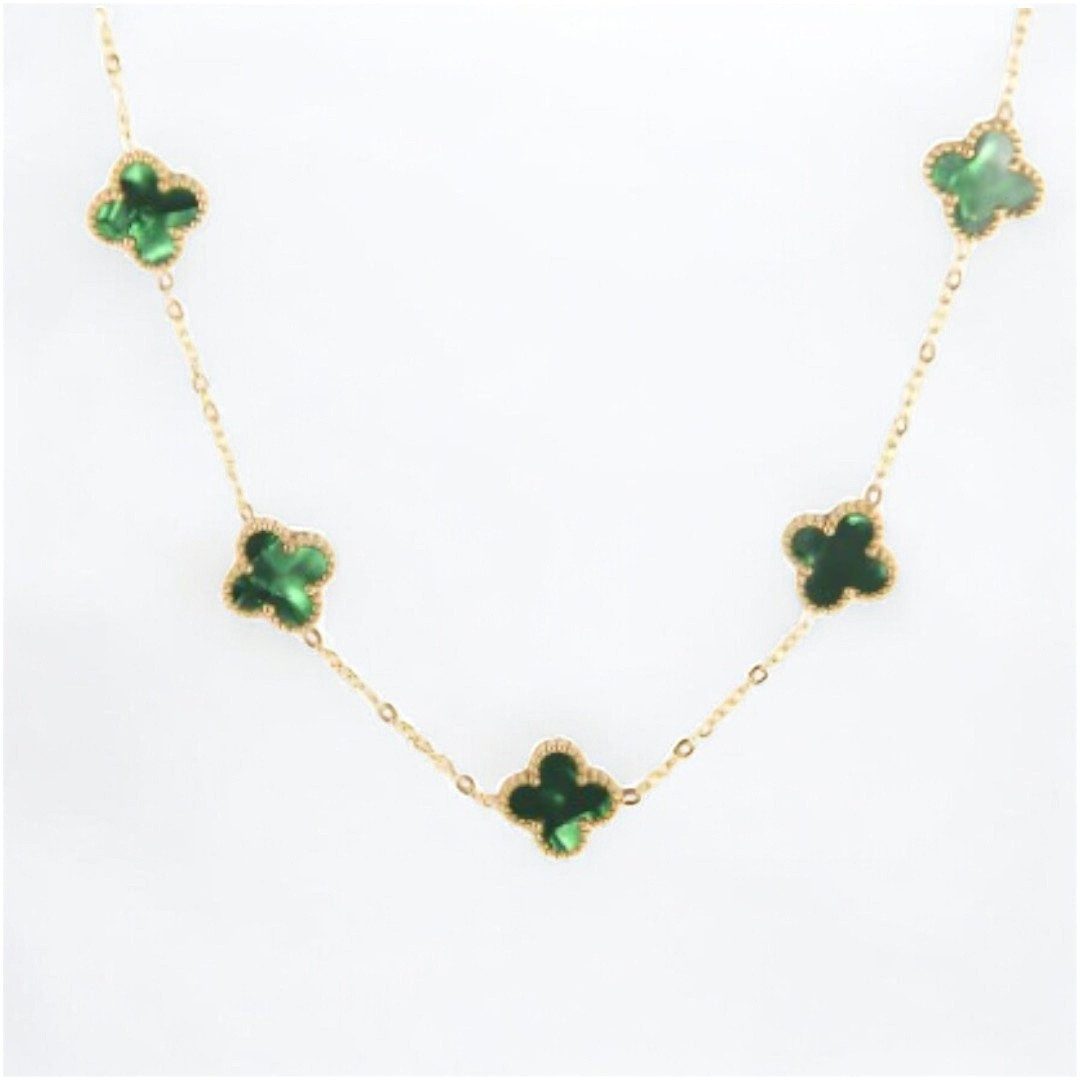 Eleganz trifft auf Glück Diese Edelstahl-Halskette ist das perfekte Zusammenspiel aus zeitloser Eleganz und symbolischer Bedeutung. Die feine, goldene Kette ist mit mehreren vierblättrigen Kleeblatt-Anhängern in einem tiefgrünen Farbton verziert – ein Zeichen für Glück, Hoffnung und Stil. Highlights: Hochwertiger Edelstahl – rostfrei, langlebig & wasserfest Hypoallergen – perfekt für empfindliche Haut Edle Kleeblatt-Details für einen Hauch von Luxus & Glück Feine, elegante Kette – ideal für jeden Anlass Diese Kette ist nicht nur ein stilvolles Accessoire, sondern auch ein Glücksbringer, der deinen Look mit einer besonderen Bedeutung abrundet. Perfekt für den Alltag oder als besonderes Geschenk!