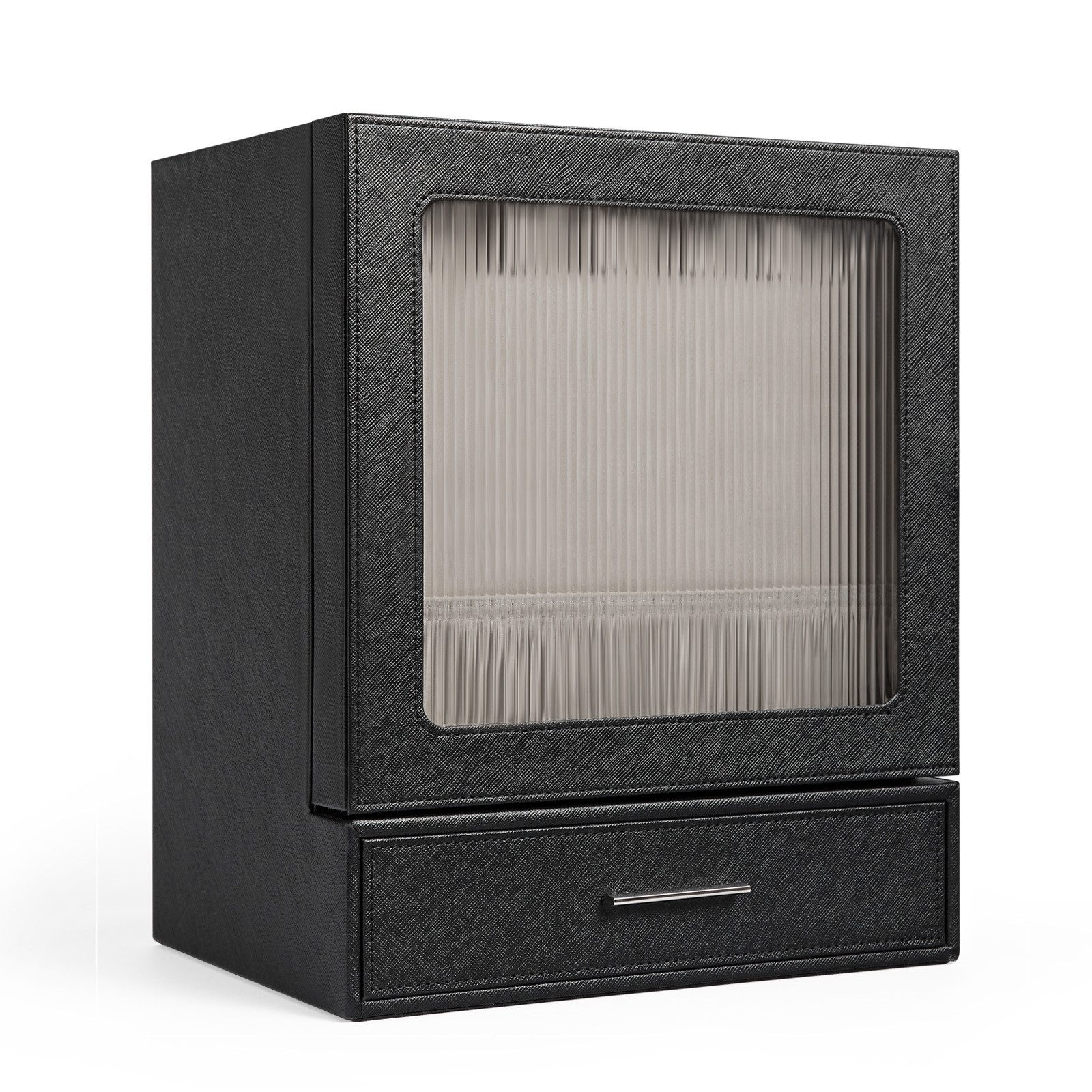 Bei diesem Produkt handelt es sich um eine geknickte Kassettenstruktur mit insgesamt elf Stauräumen. Die Vorderseite der Box ist eine Changhong-Acryl-Ausstellungstafel mit einer Aufhängetafel zur Aufbewahrung von Halsketten und einem erhöhten Aufbewahrungsgitter darunter. Nach dem Öffnen gibt es 9 Aufbewahrungsfächer, die für meiste Arten von Schmuck geeignet sind.