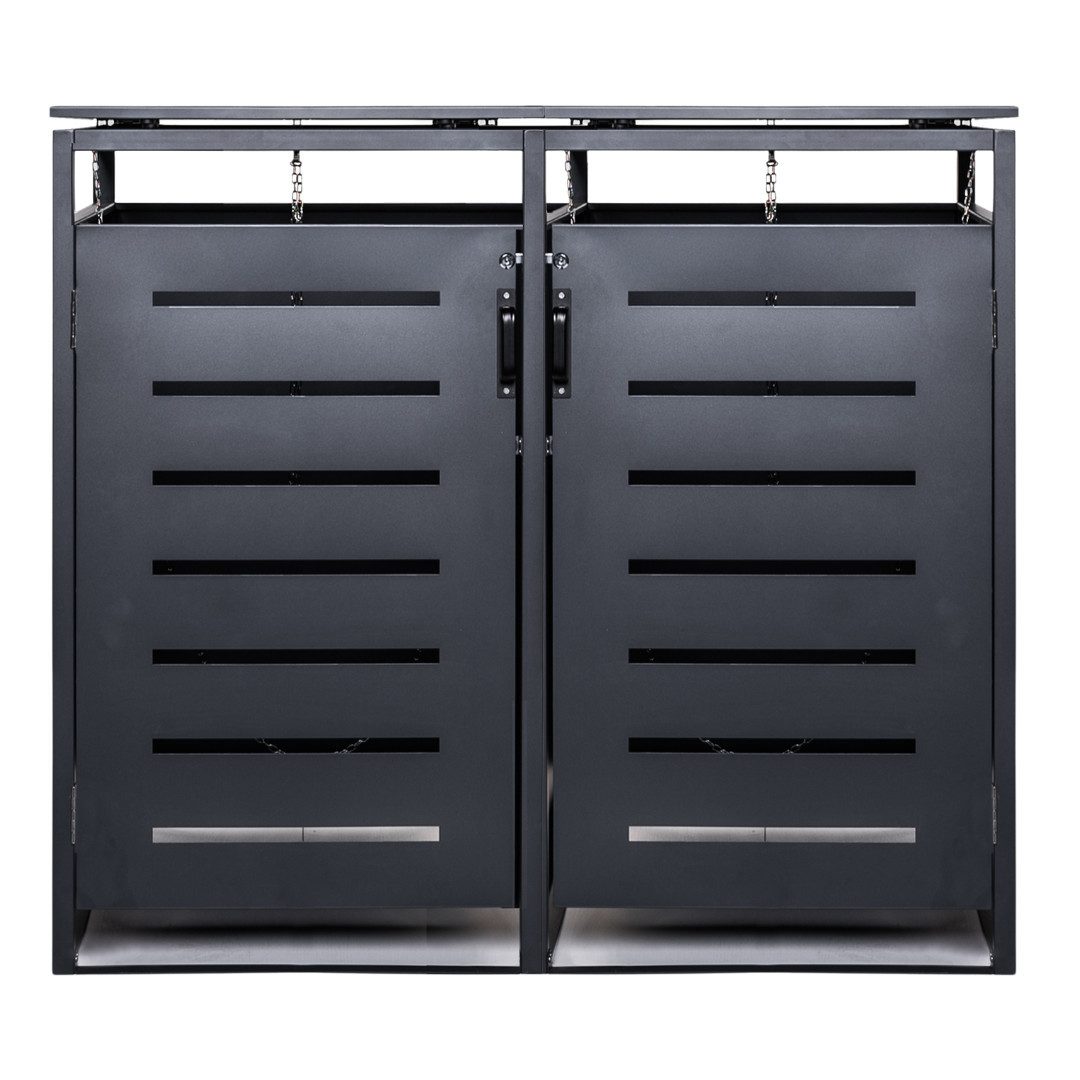 Das klare, Minimalistische Design mit ihrer glatten Oberfläche in elegantem RAL7016 (Anthrazit) überzeugt durch zeitlose Ästhetik. Die Mülltonnenbox lässt sich harmonisch in moderne wie klassische Außenbereiche integrieren und setzt stilvolle Akzente, ohne aufdringlich zu wirken.