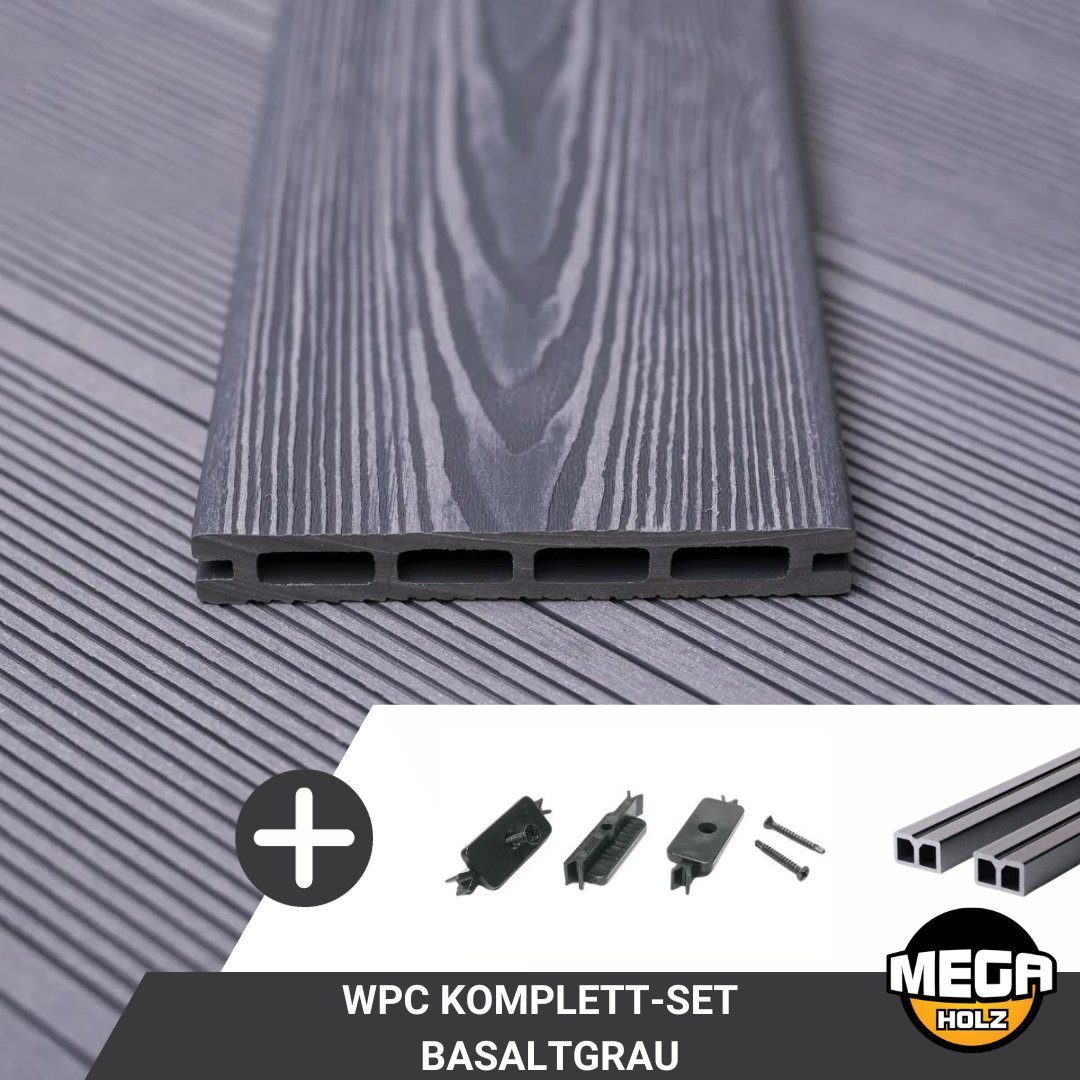 Tauchen Sie ein in die Welt der stilvollen und nachhaltigen Terrassengestaltung mit unserem Mega-Holz Terrassendielen Komplettset WPC. Dieses innovative Set bietet eine Komplettlösung, um Ihre Terrasse in einen eleganten Außenbereich zu verwandeln.