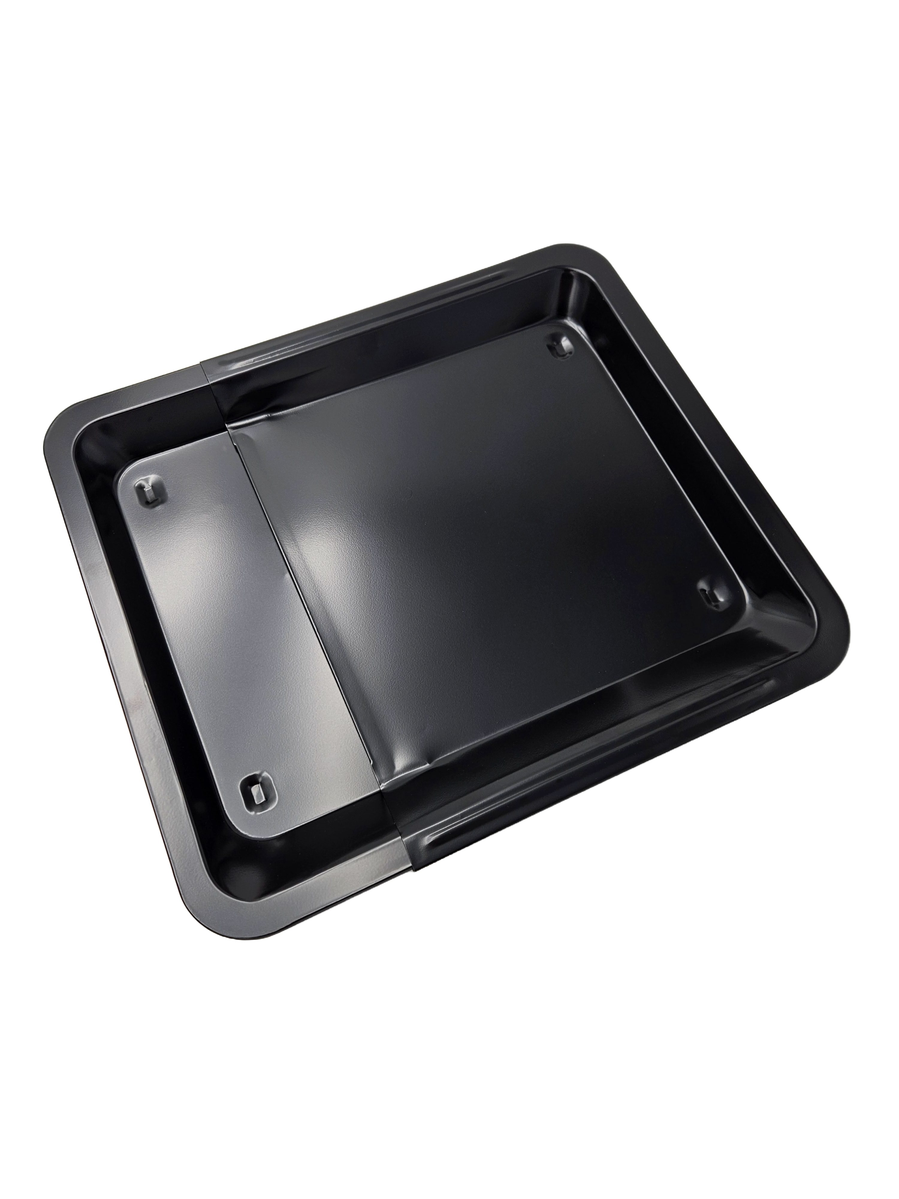 Schwarzes Backblech antihaftbeschichtet aus Carbonstahl zum ausziehen.