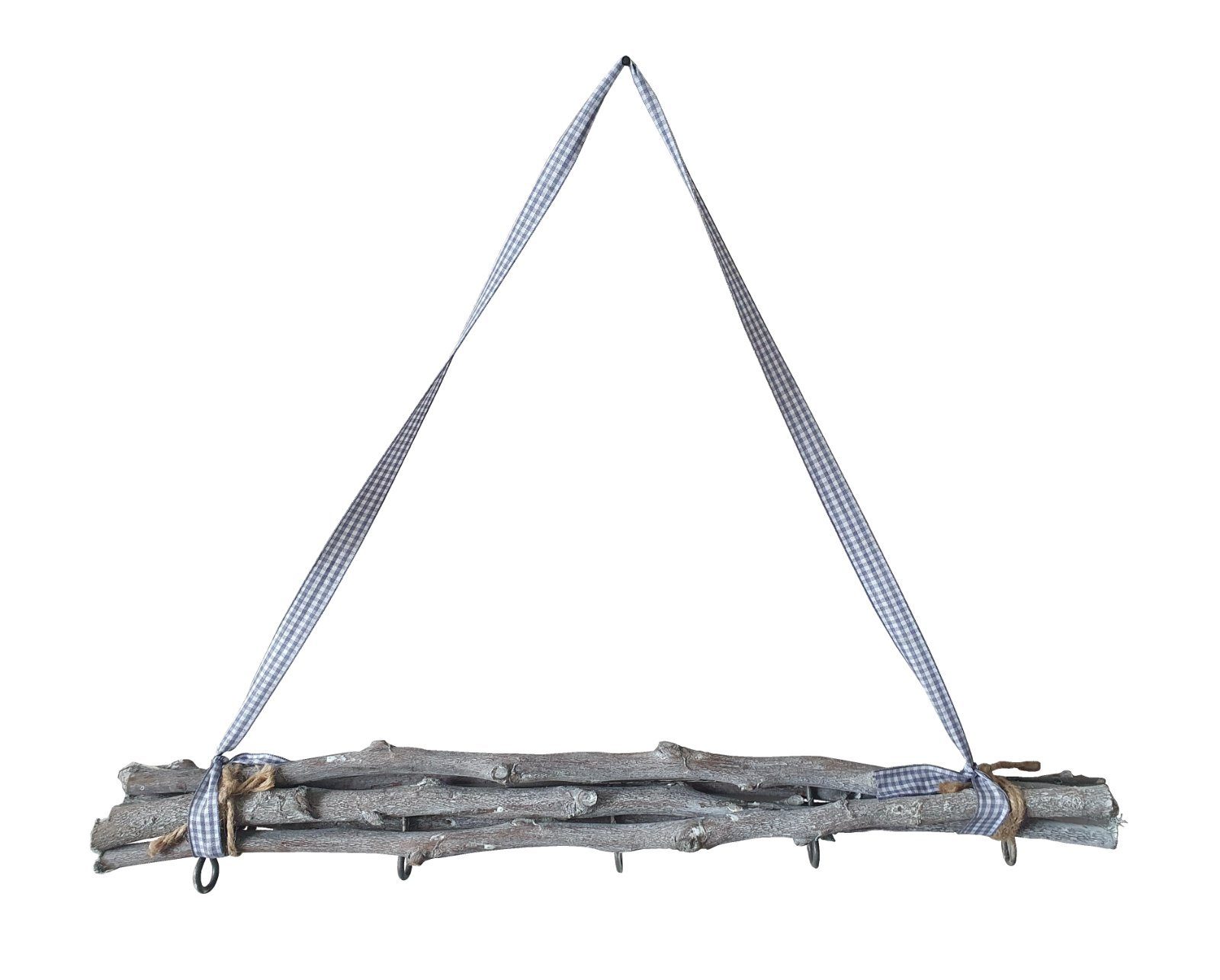 Fensterhänger 50 cm Dekorative Hängezweige in grau im shabby Stil mit 5 Metallhaken und Stoff-Aufhängeband. Der Hänger eignet sich gut im Fenster, an der Tür oder über dem Tisch. Die Zweige lassen sich auch gut zur Saison umdekorieren und sind ein toller Blickfang mit z.B. Ostereiern, Weihnachtskugeln, mit Dekohängern verziert, mit einer Lichterkette umwickelt, etc. Farbe: Zweige grau shabby, Band grau-weiß kariert, Juteband natur braun Material: Äste, Stoffband, Juteband Maße, ca.: Breite: 50 cm Gesamthöhe: 40 cm