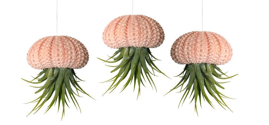 3er Set Seeigelgehäuse mit Aufhängung und jeweils einer echten lebenden Tillandsia ( keine Kunstpflanze ) Handmade in Germany Exotische Deko Exotisches Flair für dein Zuhause Bezaubernde Kombination aus Seeigelgehäuse und Tillandsia Der absolute Hingucker in deinem Zuhause und super pflegeleicht! Eine wunderschöne Deko und exotisch zugleich. Egal wo Du diese tolle Deko auch anbringst, diese Kombination wird in jedem Fall zum Eyecatcher. Auch bestens als Geschenk geeignet ! Jede Luftpflanze ist ein kleines Wunder der Natur. Diese Pflanze lebt von Licht, Luft, einwenig Wasser und benötigt keine Erde. Die Tillandsia ist ursprünglich in Südamerika beheimatet. Dort wächst sie in tropischen und subtropischen Gegenden. Diese wunderbaren Pflanzen freuen sich über einen hellen Standort ohne direkte Sonneneinstrahlung. In Räumen mit hoher Luftfeuchtigkeit fühlen sie sich besonders wohl. Zwei- bis dreimal pro Woche mit kalkarmem Wasser ( gerne auch Regenwasser ) besprüht reicht als Pflege absolut aus. Jede Deko Kombination ist ein Unikat. Nachdem es sich um lebende Pflanzen handelt können diese natürlich einwenig von den Bildern abweichen.