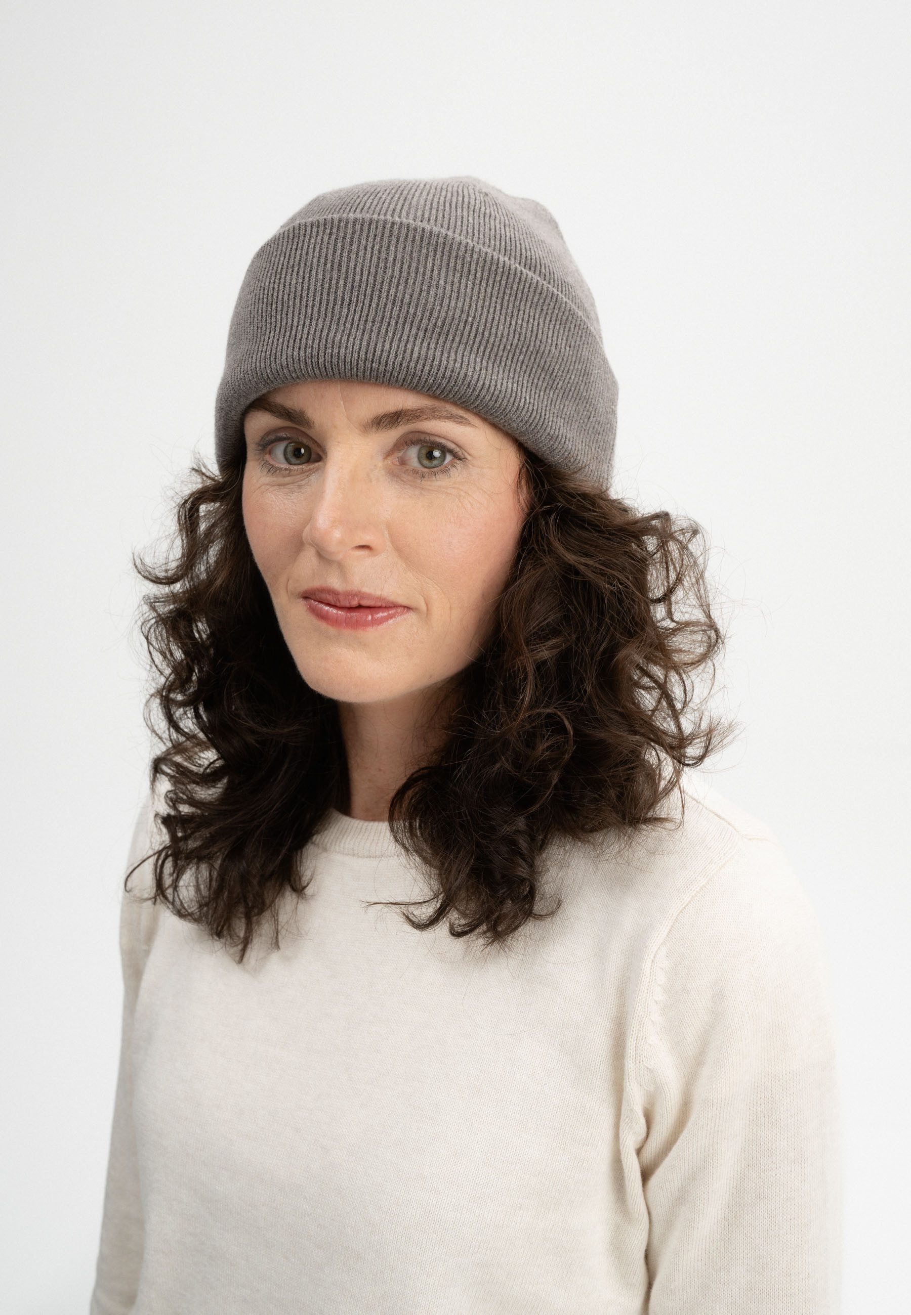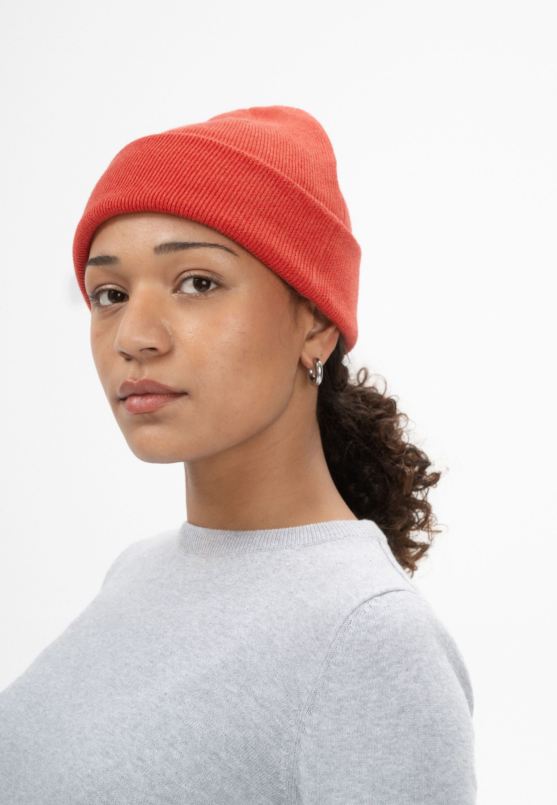 Himmat ist eine weiche Feinstrick-Mütze mit normaler Passform, doppellagig gearbeitet und mit variablem Umschlag – für optimalen Sitz und wärmenden Komfort an kühlen Tagen. Ihr zeitloses Design macht sie zum vielseitigen Begleiter im Alltag. Perfekt kombinierbar mit den passenden MELA-Strickschals.