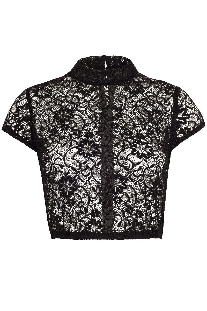 Die bezaubernde, hochgeschlossene Dirndlbluse "Lola" in den Farben Schwarz bzw. Weiß besteht komplett aus elastischer, transparenter Spitze und hat allover ein romantisches Muster aus Blüten und Ornamentik-Motiven. Der doppellagige Kragen wird hinten mit zwei Knöpfen sowie elastischen Knopfschlaufen geschlossen. Die Bündchen der kurzen Ärmelchen sind verstärkt. Für den perfekten Sitz sorgt der elastische Saum.