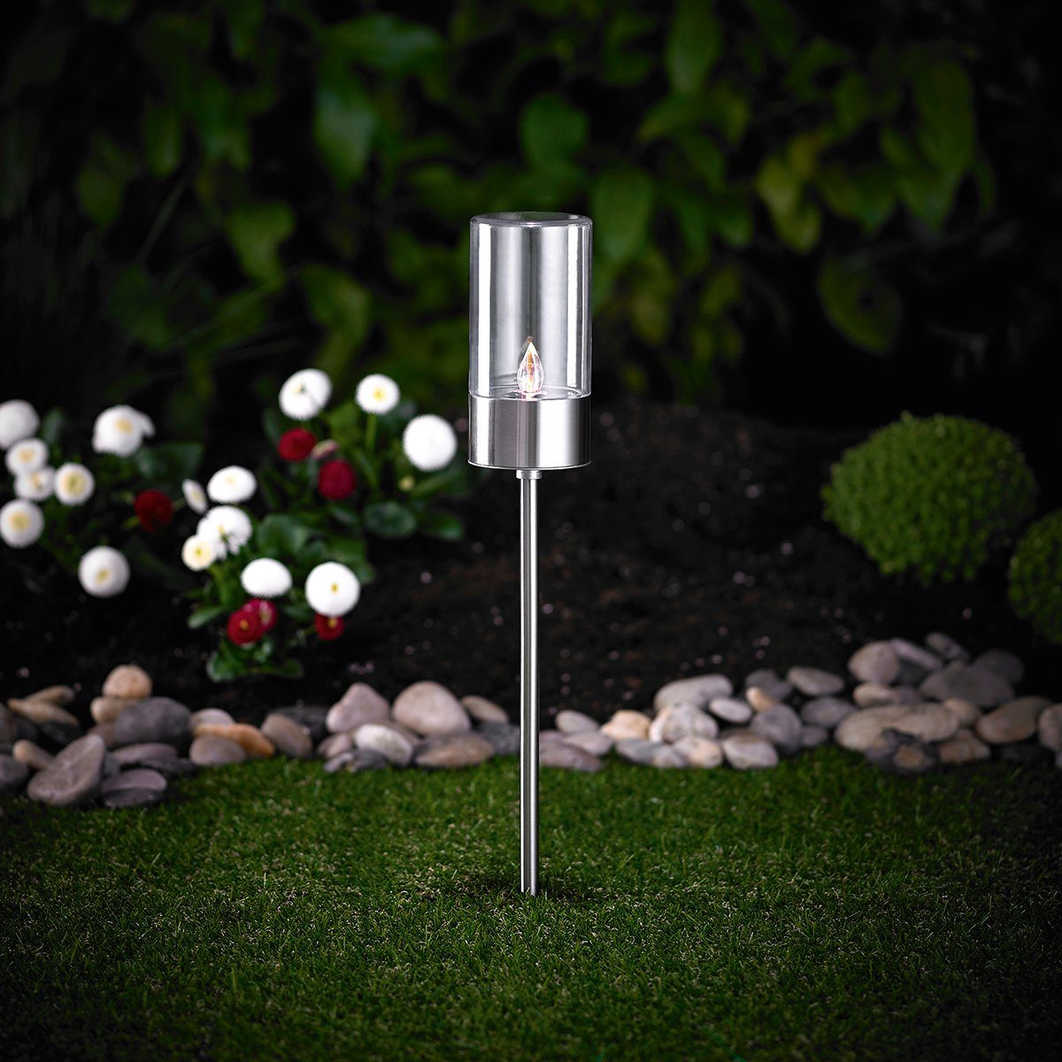 Die Solarleuchte schaltet sich bei Dunkelheit automatisch ein und gibt die Energie ab, die tagsüber gespeichert werden konnte.