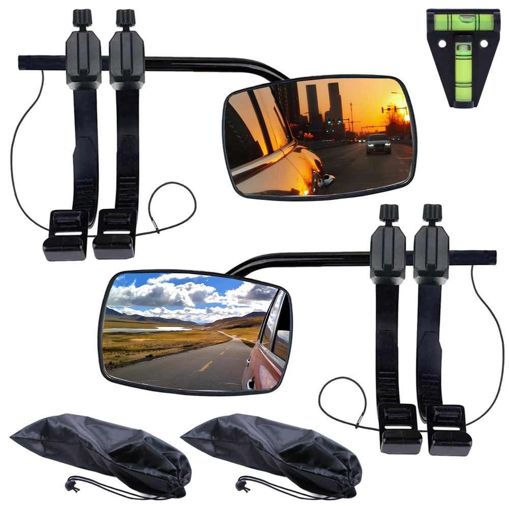 Lieferumfang | 2 x Caravanspiegel inkl. Befestigungsmaterial, 2 Aufbewahrungstasche, 1x Kreuzwasserwaage |