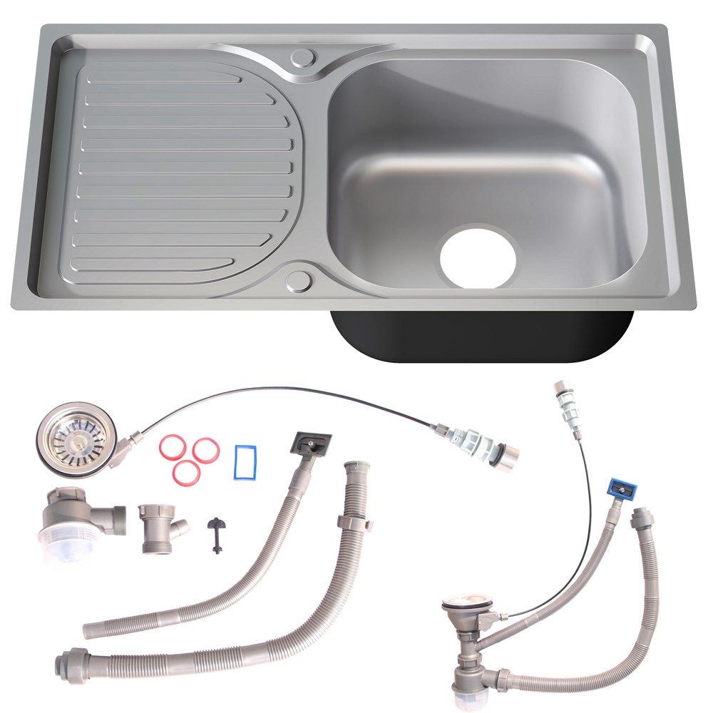 Lieferumfang | 1 x Spülbecken mit Ablage inkl. XXL Zubehör Paket Ablaufgarnitur, usw. |