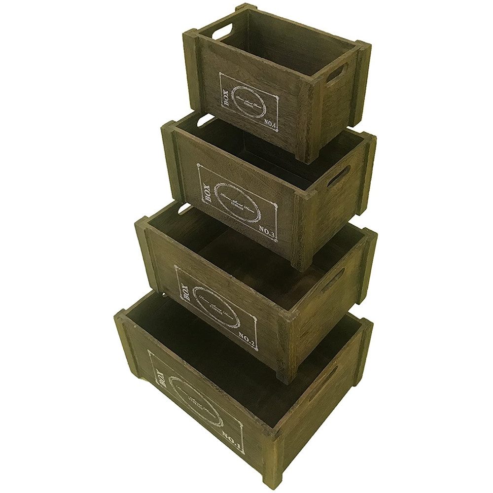 Lieferumfang | 1x vier unterschiedlich große Aufbewahrungsboxen in Braun |
