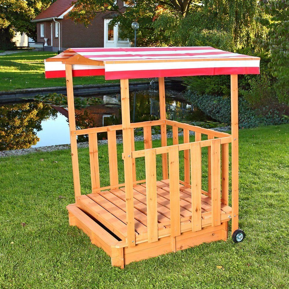 Das Sandkasten-Spielhaus schütz Ihre Kinder beim Spielen vor Sonne und Regen! Die überdachte Veranda bietet auch den Kleinsten einen geschützten Platz. Praktisch: der Sandkasten läßt sich durch die Transportrollen unter der Veranda verstecken, so dass der Sand und das Spielzeug vor Witterungseinflüssen und ungebetenen Tieren geschützt ist.