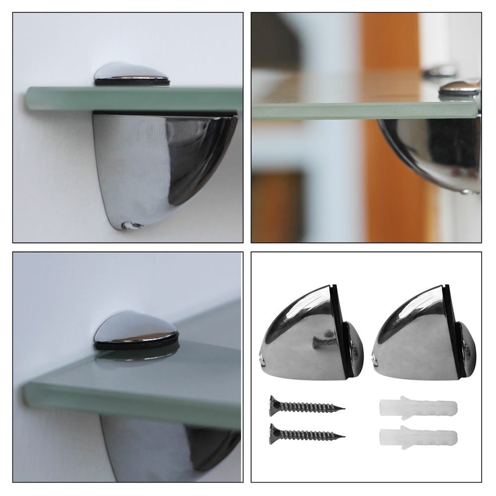 Lieferumfang | 1 x Glasregal inkl. 2 Halterungen aus Kunststoff verchromt in Edelstahl-Optik + Dübel und Schrauben |