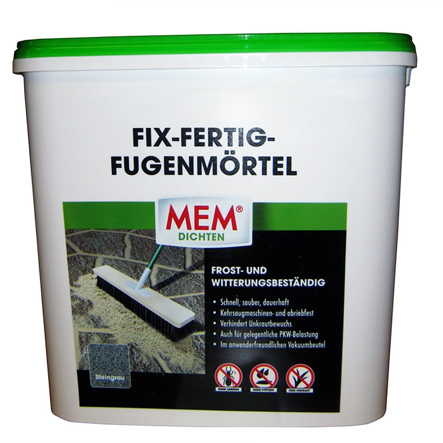 1. Eigenschaften/Anwendung MEM FIX-FERTIG-FUGENMÖRTEL ist ideal zur Verfugung von Natursteinpflaster und -platten, Betonsteinprodukten und Klinkerpflaster – und zwar in Eingangsbereichen und Innenhöfen, auf Terrassen und Gartenwegen. MEM FIX-FERTIG-FUGENMÖRTEL ist auch für eine gelegentliche PKW-Belastung geeignet und Kehrsaugmaschinen- und abriebfest. MEM FIX-FERTIG-FUGENMÖRTEL gewährleistet eine optimale Wasserdurchlässigkeit und ist ohne Anmischvorgang gebrauchsfertig. Nach der Verfugung mit MEM FIX-FERTIG-FUGENMÖRTEL kann sich ein leichter Glanzfilm bzw. eine Verfleckung zeigen, diese(r) verschwindet durch Bewitterung und mechanische Belastung. Bei sachgerechter Verarbeitung wird dieser Effekt deutlich minimiert. Es empfiehlt sich deshalb eine Probefläche anzulegen! MEM FIX-FERTIG-FUGENMÖRTEL ist umweltverträglich, frost- und witterungsbeständig. 2. Wirkungsweise Die Verarbeitungszeit beträgt ca. 30 Min. bei + 20 °C. Der geöffnete Beutel muss sofort verarbeitet werden. Nach dem Öffnen beginnt der Aushärtungsprozess! Hinweis: Sie können MEM FIX-FERTIG-FUGENMÖRTEL nach dem Öffnen für max. 4 Wochen haltbar machen. Geben Sie das nicht benötigte Material direkt nach dem Öffnen in den Eimer und füllen Sie ihn so lange mit Wasser auf, bis das Wasser ca. 5 - 10 cm über dem Material steht.