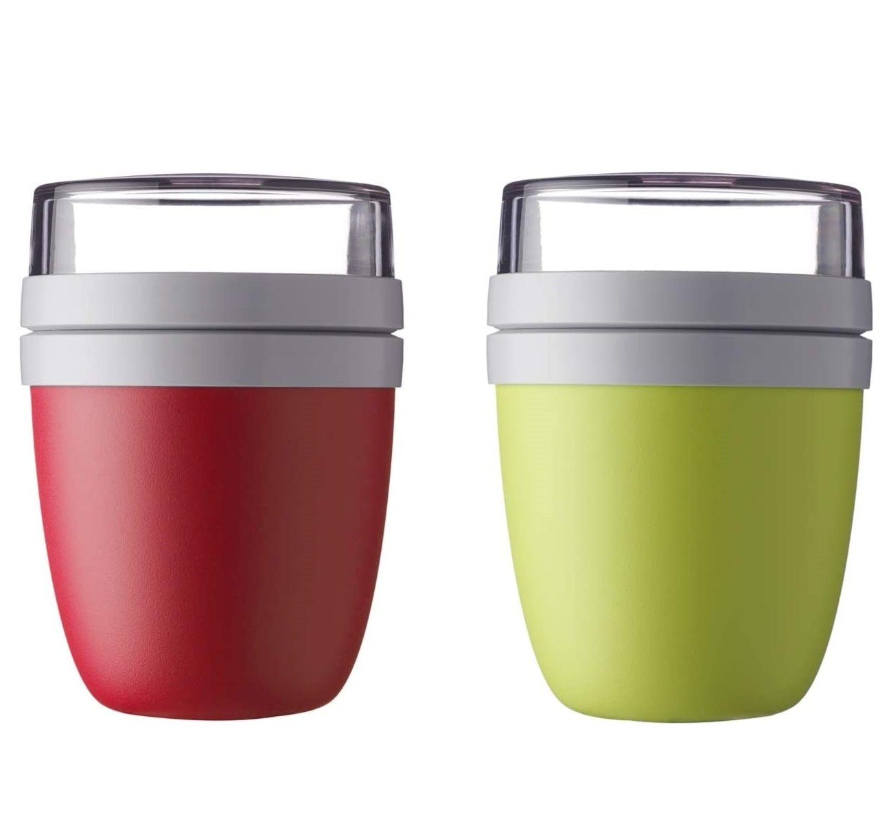 Die perfekte Lösung, um eine Zwischenmahlzeit oder einen Snack mitzunehmen - Der Lunchpot hat zwei verschiedene Behälter, in denen sich Zutaten einer Mahlzeit getrennt voneinander aufbewahren und transportieren lassen. So lässt sich der Lunchpot zum Beispiel für Joghurt und Müsli oder Suppe und Croutons verwenden und wird dadurch ganz nebenbei zum Suppenbecher, Joghurtbecher oder Müslibecher to go.