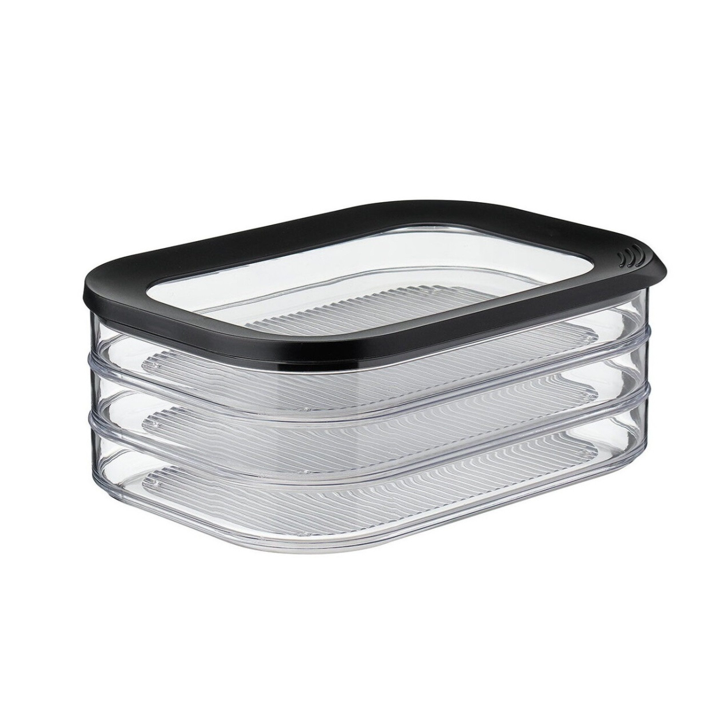 PLATZSPAREND: Durch das dreilagige Design nimmt die Aufschnittdose weniger Platz im Kühlschrank ein, während sie gleichzeitig eine große Kapazität bietet.