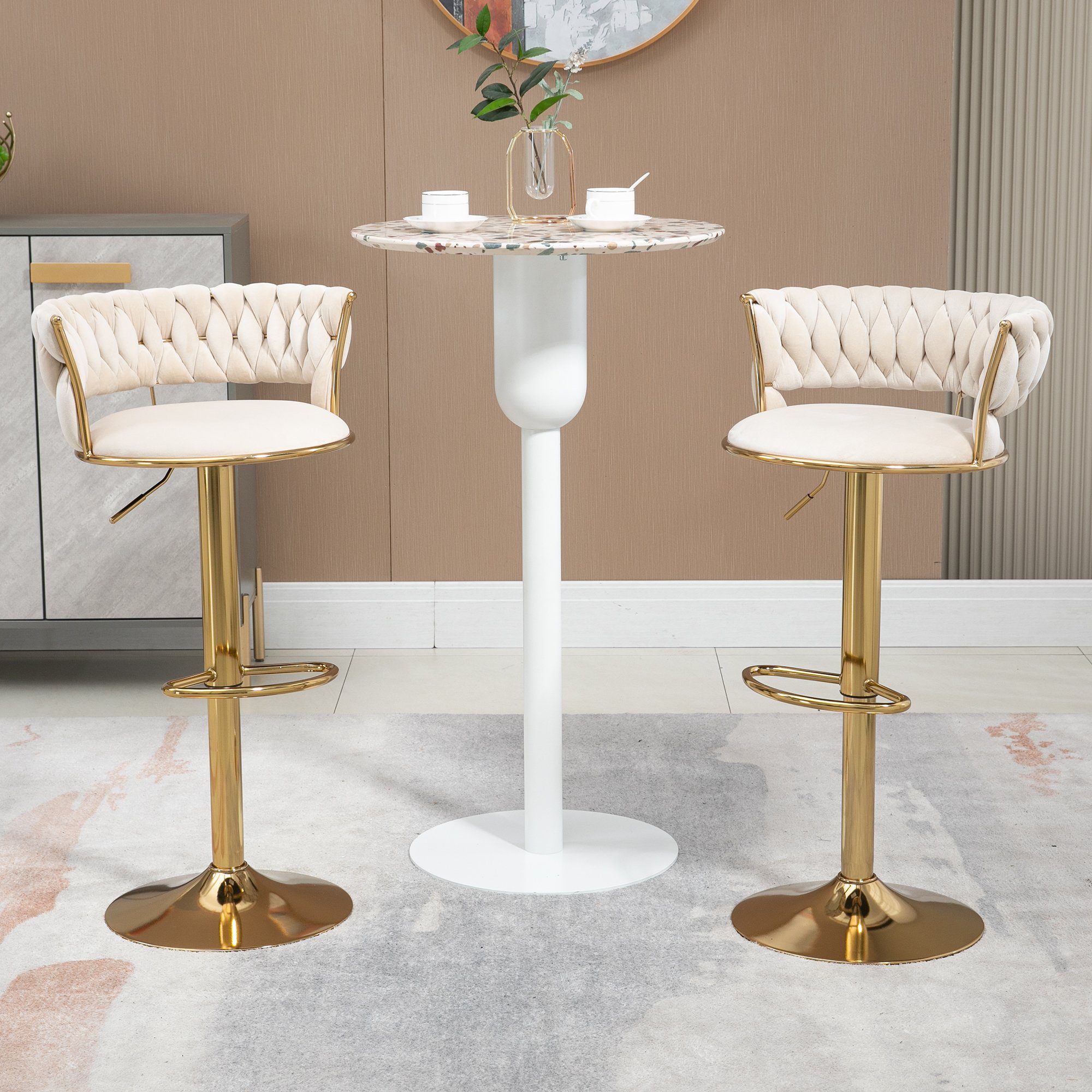 Unsere Barhocker können sich um 360° drehen, was Ihnen ermöglicht, mühelos Dinge zu erreichen oder sich mit anderen zu unterhalten, ohne den Stuhl zu bewegen. Die Sitzhöhe ist von 20 bis 40 cm verstellbar, um verschiedenen Theken- und Barhöhen gerecht zu werden. Der strapazierfähige Metallrahmen kann problemlos bis zu 150 kg tragen. Die rutschfesten und kratzfesten Gummiauflagen unter den Metallfüßen schützen Ihren Boden vor Beschädigungen und minimieren Geräusche beim Bewegen der Hocker.