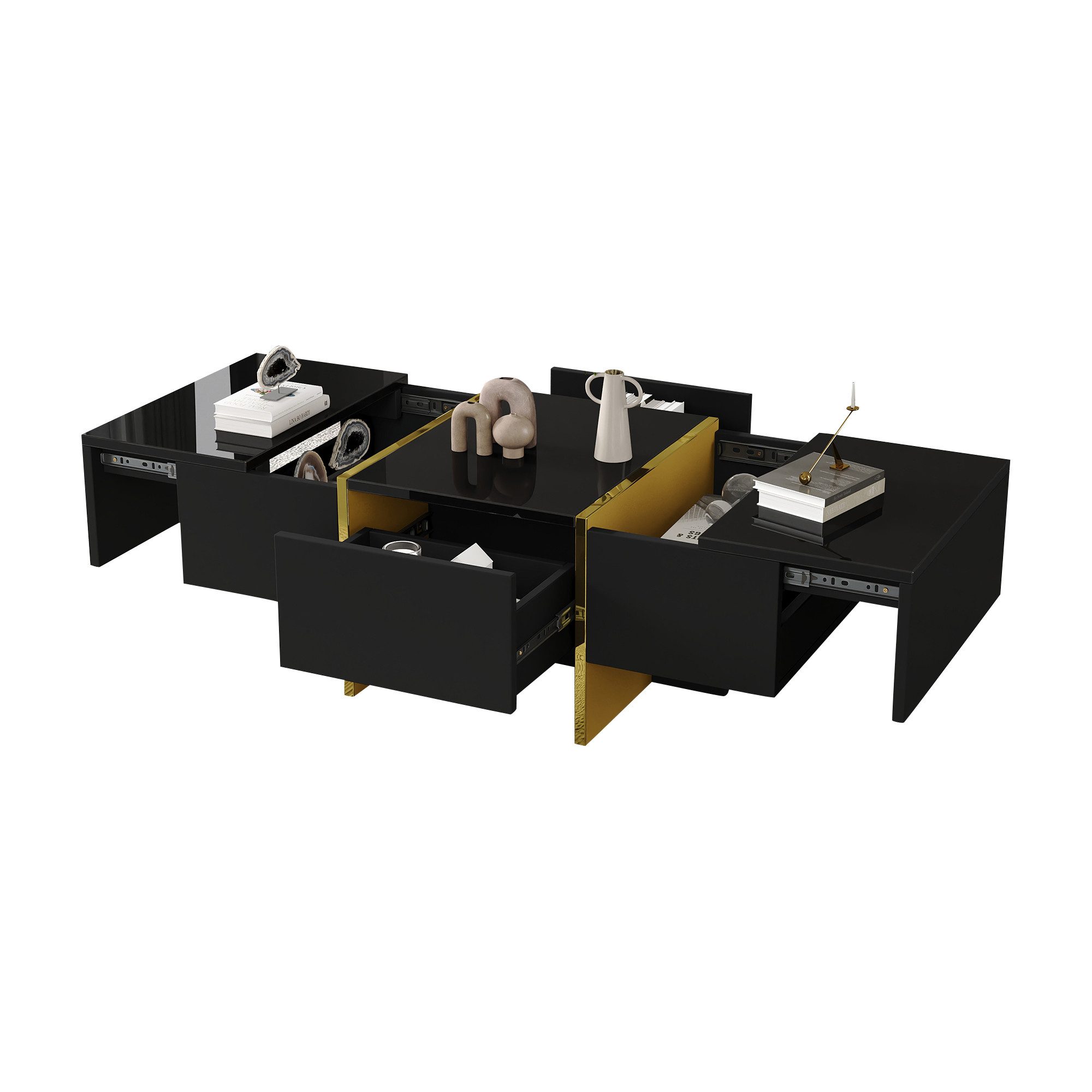 Merax steht für modernes Möbeldesign mit funktionalem Mehrwert – und dieser Couchtisch ist der beste Beweis: Kompakt, stilvoll und durchdacht. Die vier clever integrierten Schubladen bieten nicht nur viel Stauraum, sondern begeistern auch mit einem außergewöhnlichen Designkonzept. Die hochglänzende, schwarze/weiße Oberfläche mit goldenen Linien setzt edle Akzente und fügt sich nahtlos in verschiedenste Einrichtungsstile ein – ein echtes Highlight für jedes Zuhause.