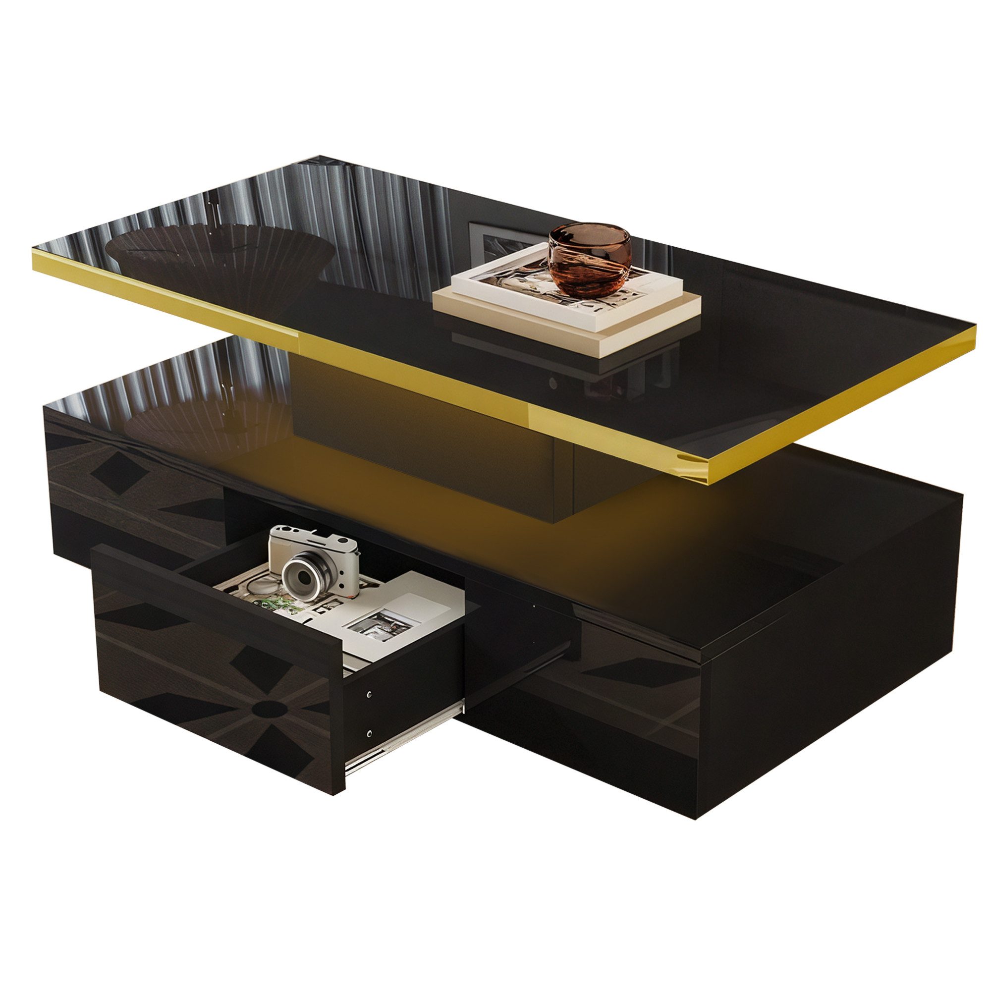 Unser moderner LED-Couchtisch vereint Eleganz und Hightech in einem. Dieser rechteckige Couchtisch aus hochwertiger Spanplatte mit Hochglanzoberfläche fügt Ihrem Wohnraum Stil hinzu. Sein minimalistisches, geradliniges Design passt perfekt zu Ihrer vorhandenen Einrichtung und verleiht Ihrem Zuhause einen Hauch von Luxus.