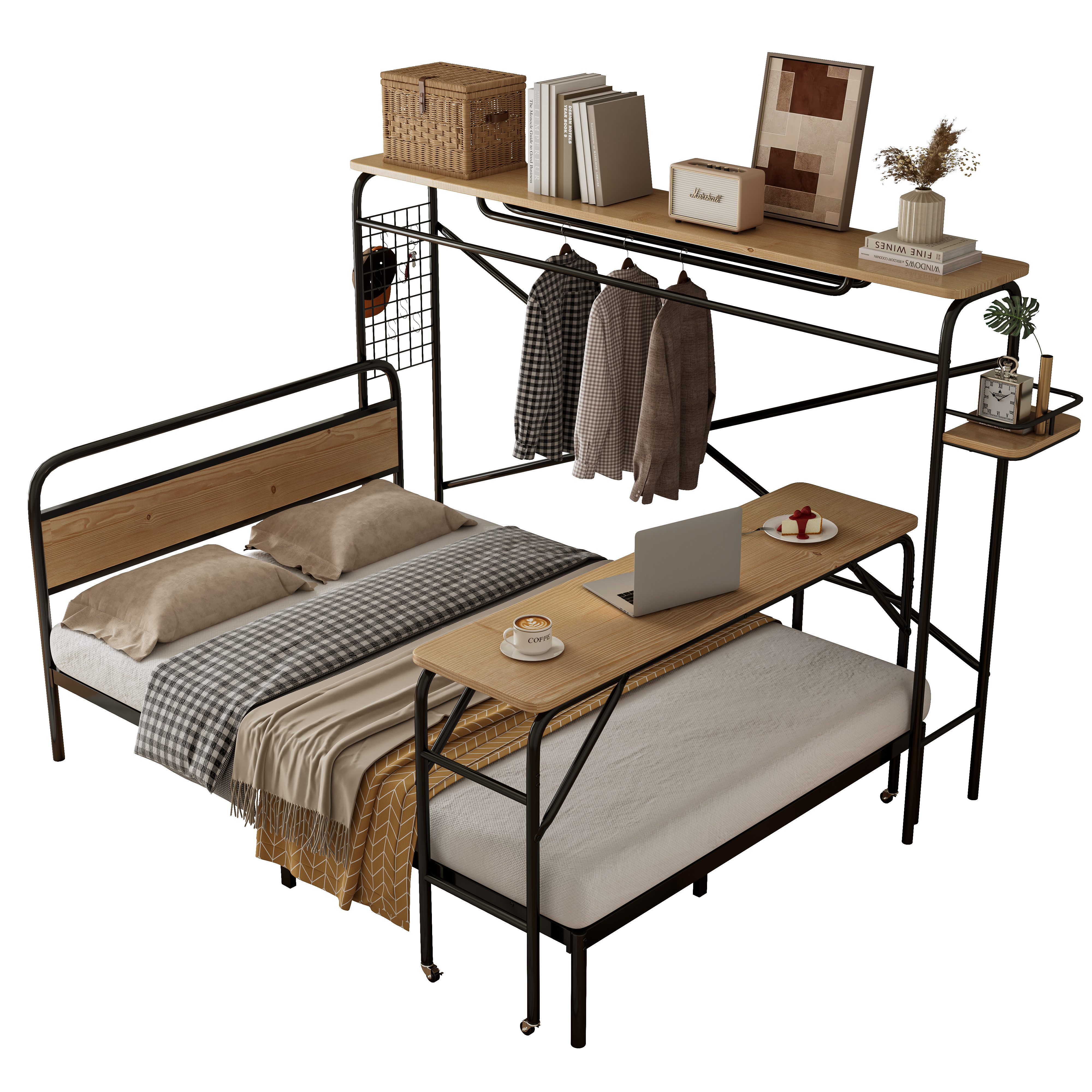 Vertikaler Garderobenständer: Der integrierte Kleiderständer im Bettgestell spart Platz und bietet eine praktische Aufbewahrung für Kleidung und Hüte, sodass Ihre Sachen stets ordentlich verstaut sind.