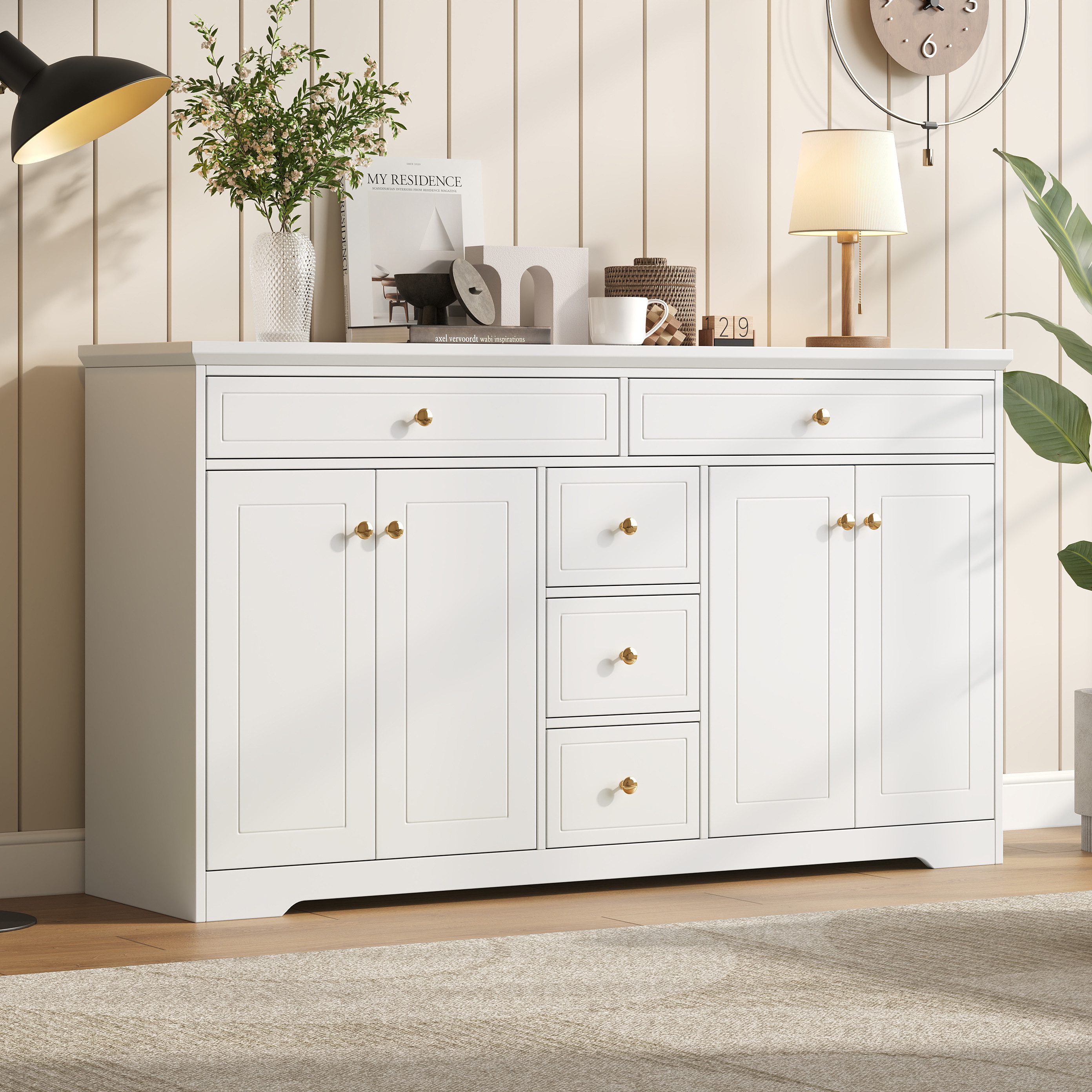 Erleben Sie mit dem Merax Sideboard perfekte Ordnung und stilvolles Design in Ihrem Zuhause. Mit fünf Schubladen, zwei verstellbaren Schränken und robustem MDF-Material bietet es flexible Aufbewahrung für Wohnzimmer, Schlafzimmer oder Büro – praktisch, modern und langlebig.