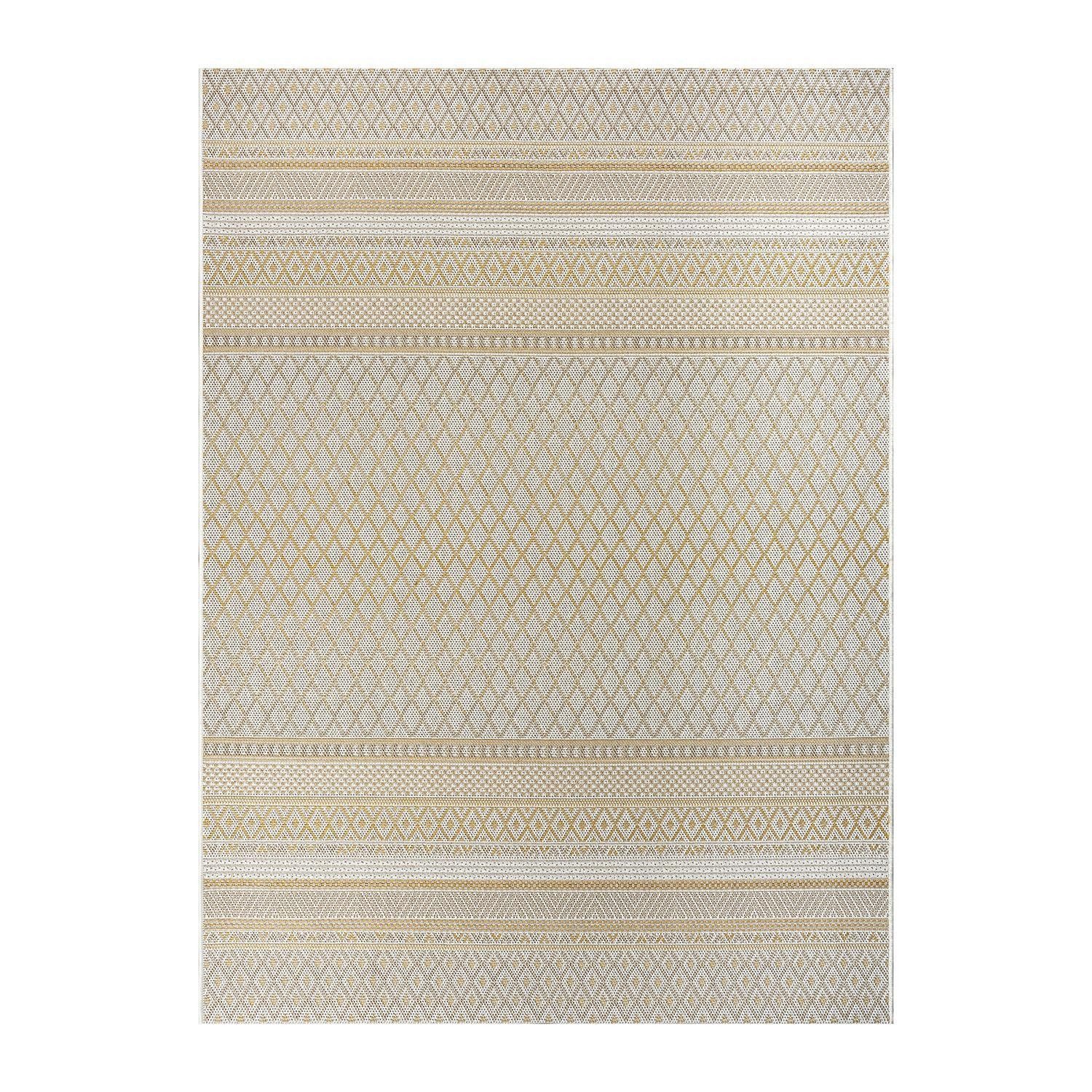Der In- und Outdoorteppich OTTAWA in Beige und Gelb verbindet modernes Design mit hoher Funktionalität. Das dekorative Rautenmuster setzt stilvolle Akzente und sorgt für eine freundliche Atmosphäre. Mit den Maßen 160 x 220 cm bietet er großzügige Fläche und ist vielseitig einsetzbar. Gefertigt aus robustem Polypropylen überzeugt er durch seine wasserabweisenden und UV-beständigen Eigenschaften. Damit eignet er sich ideal für Wohnräume, Terrassen, Balkone oder den Garten und schafft überall ein gemütliches Ambiente.