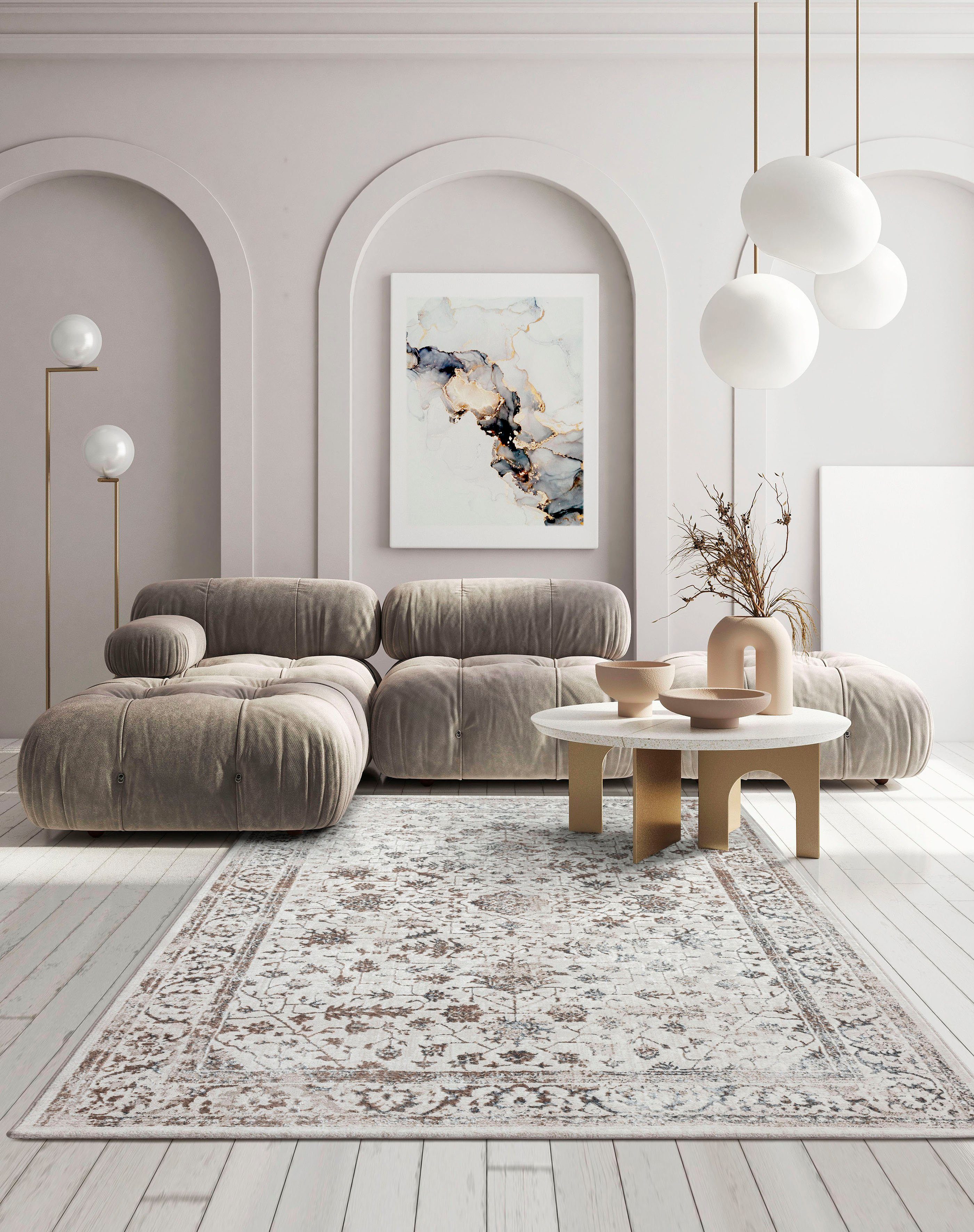 Maschinell gewebter Teppich | Beim Auslegen des Teppichs kann durch das Aufrollen der Teppich etwas wellig erscheinen, dieses legt sich nach kurzer Zeit aus. Sie können dieses etwas beschleunigen wenn Sie den Artikel in gegenläufiger Richtung nochmals aufwickeln. |