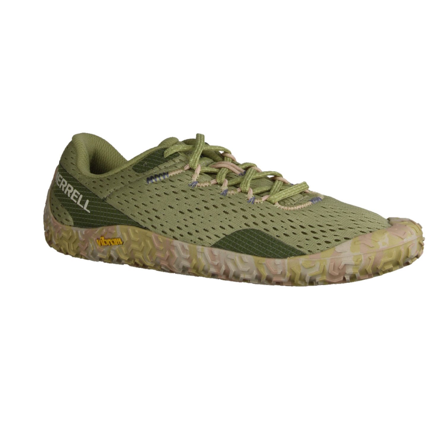 Der Barfußschuh Vapor Glove 6 von Merrell ist ein minimalistischer Damenschuh, der für den Einsatz in zahlreichen Sportarten oder auch als Freizeitschuh geeignet ist. Er verfügt über eine extrem flache Sohle und bietet somit ein sehr direktes Laufgefühl. Das Obermaterial besteht aus atmungsaktivem Mesh, das für gute Belüftung sorgt und den Fuß angenehm trocken hält. Die verstärkte Zehenkappe schützt vor Stößen und Abrieb und erhöht die Haltbarkeit des Schuhs. Durch die flexible Außensohle passt sich der Schuh perfekt an die Form des Fußes an und fördert somit die natürliche Bewegung beim Gehen oder Laufen. Der Vapor Glove 6 ist zudem vegan und wurde ohne tierische Inhaltsstoffe hergestellt. Insgesamt ein hochwertiger Barfußschuh mit vielen funktionalen Eigenschaften. Für optimale Bodenhaftung und Strapazierfähigkeit steht die Vibram EcoStep Laufsohle aus 30% recyceltem Gummi.