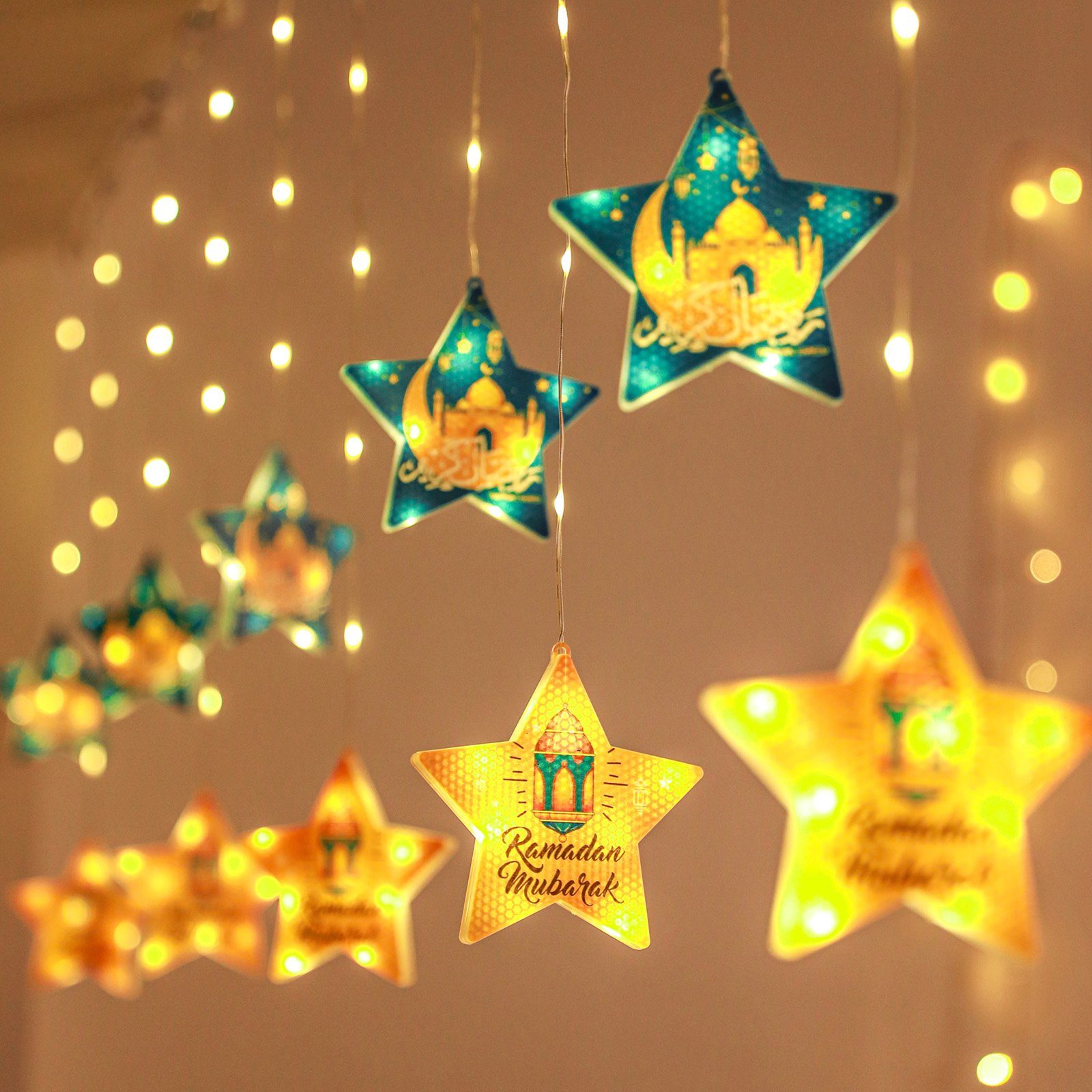 1. holen Sie sich diese Ramadan-Lichter, um sie während des Ramadan in Ihrem Arbeitszimmer zu verwenden. Lang genug, um die Hälfte der Wand zu bedecken, die Breite kann die ganze Wand von den Seiten bedecken, sehr schöne Ramadan Eid Heimdekorationen.