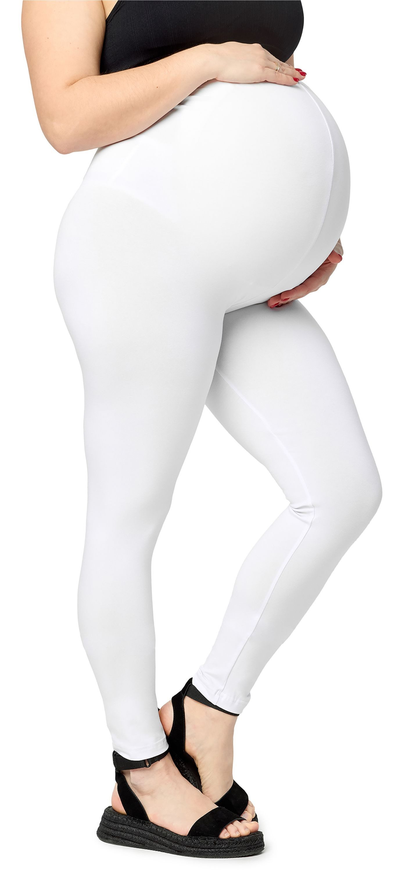 Plus Size Lange Umstandsleggings mit hohem Bund. Die Große Größen Damen Leggings wurden so entworfen, um den wachsenden Babybauch der zukünftigen Mutter zu halten. Die Leggings wurden fast gänzlich aus hochwertiger und sehr elastischer Viskose hergestellt. Viskose ist ein atmungsaktives, seidiges Material, das sich toll der Figur anpasst. Das bewirkt, das Produkte, die aus Viskose hergestellt wurden nicht nur bequem sind, aber auch noch toll aussehen. Obwohl Viskose künstlich hergestellt wird, entsteht sie aus natürlichen Komponenten. Dank dessen hat Viskose wünschenswerte, natürliche Materialeigenschaften, solche wie Baumwolle oder Seide. Ist luftdurchlässig. Sie ist sogar hundertmal saugfähiger als Baumwolle. Auf der Haut ist sie glatt, saugfähig, mit leichtem Glanz. Diese Eigenschaften bewirken, dass Viskose sich ideal zur Produktion von Nachtwäsche, Kleidern, Oberteilen und Leggings eignet. Das Material, dass aus Viskose hergestellt wurde ist etwas kälter, was einen hohen Tragekomfort verleiht - besonders im Frühling und Sommer. Materialzusammensetzung: 94% Viskose, 6% Elasthan Die eingeblendeten Farben können sich von den eigentlichen Farben unterscheiden, je nach den Parametern Ihres Monitors.