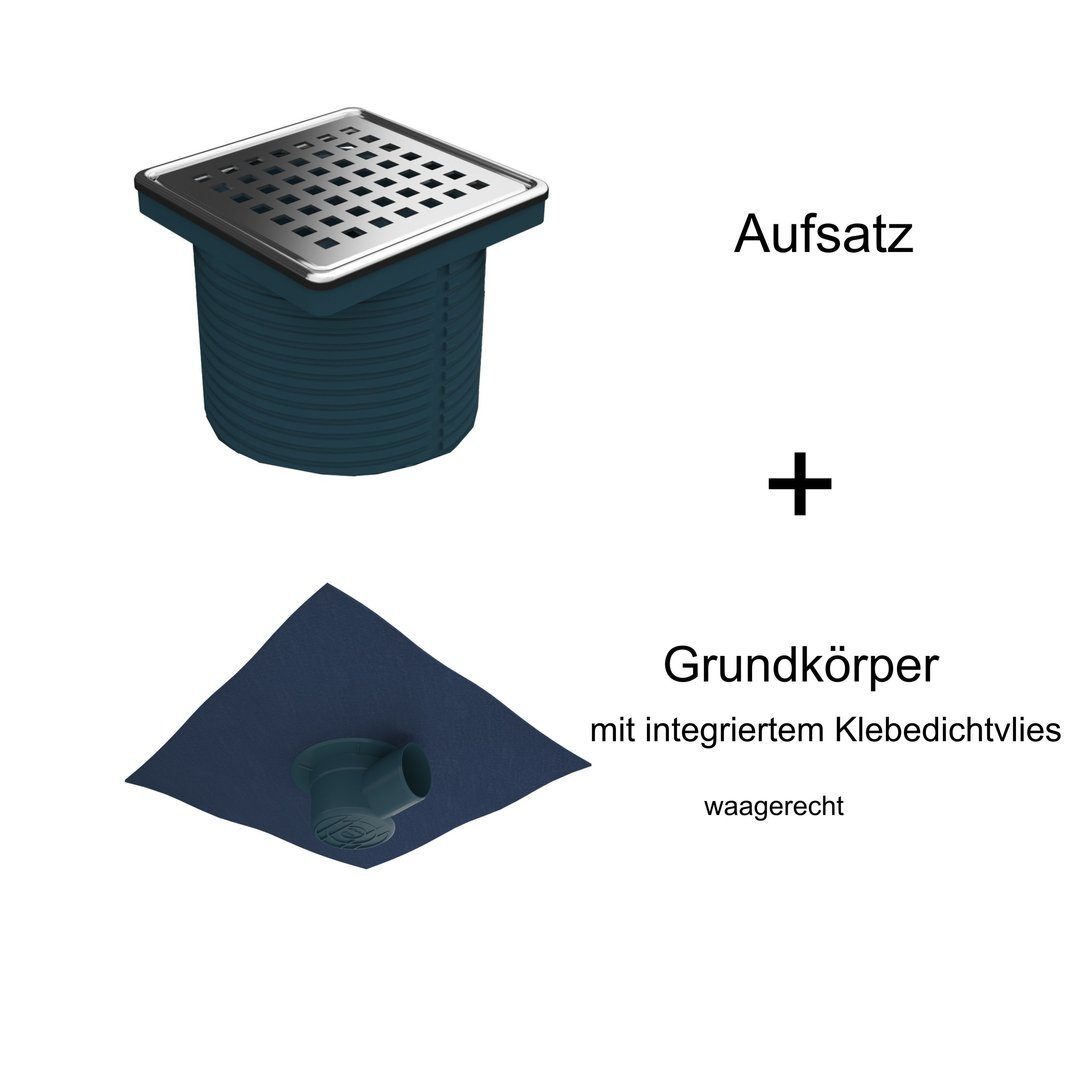 Neu MERT Bodenablauf Design "Square" 100x100mm, waagerecht 50,70 mm, Aufsatz, Grundkörper mit Dichtvlies