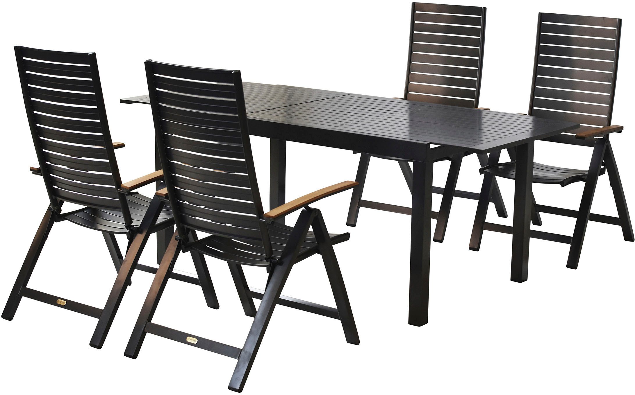Set beinhaltet | 4 Klappsessel, 1 Ausziehtisch |