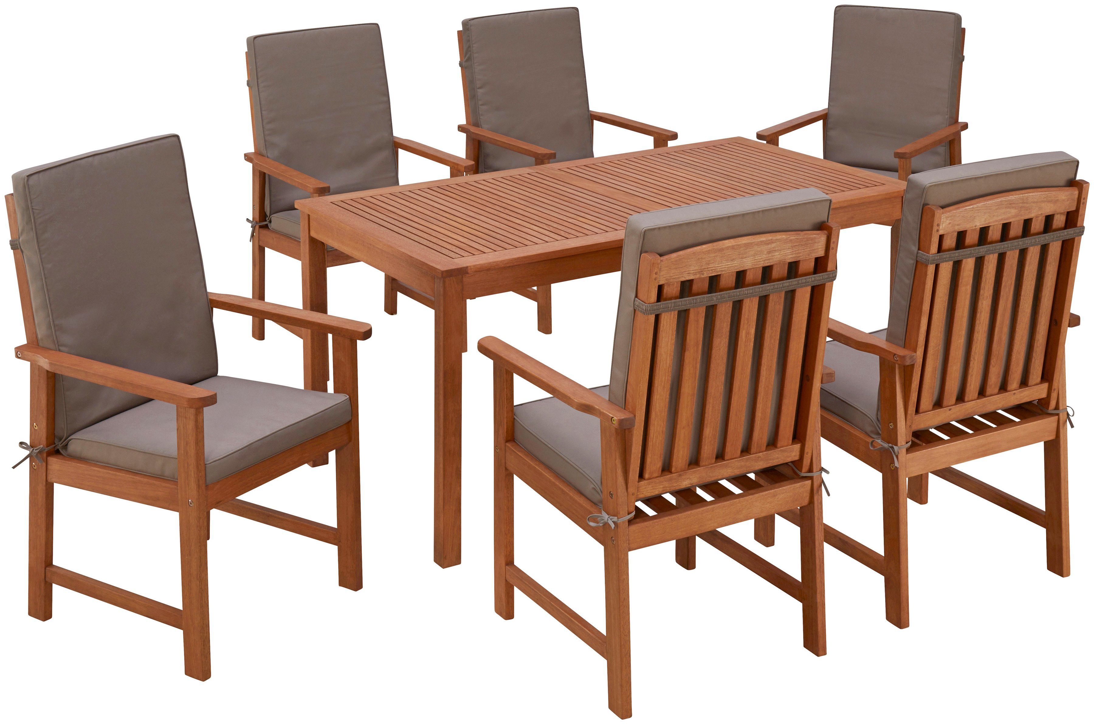 Das 13-teilige Gartenmöbelset »Montana« ist gemacht für lange Sommerabende in großer Runde. Die sechs Stühle und der geräumige Tisch sind aus FSC-zertifiziertem Eukalyptusholz gefertigt.