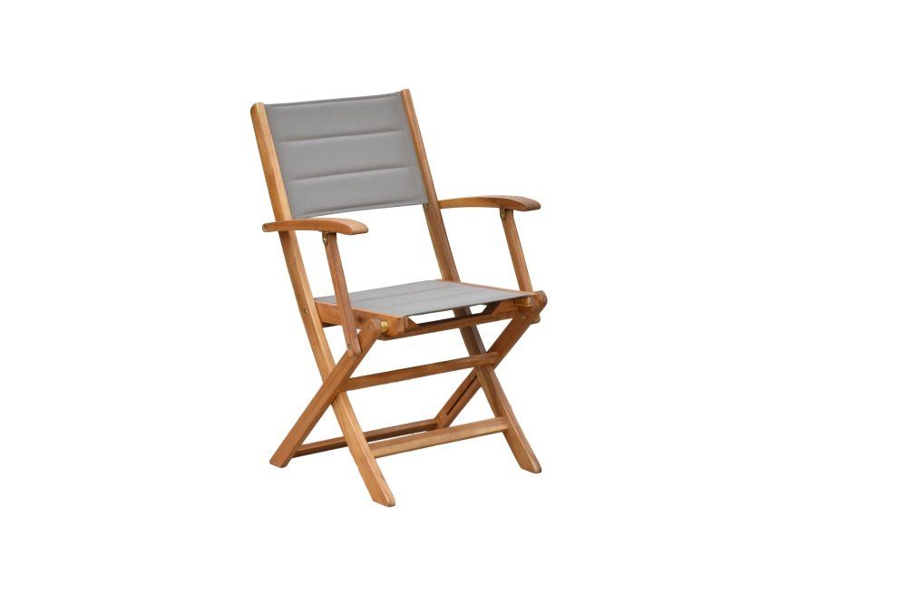 Der Acapulco Klappsessel besteht aus geölten Akazienholz und einer gepolsterten Textilbespannung.