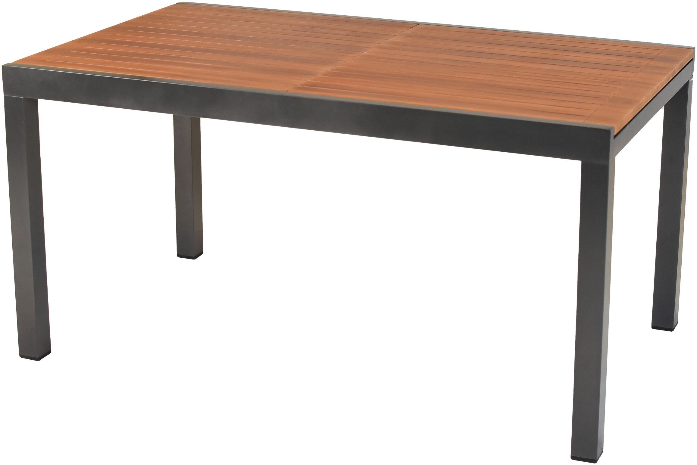 Entdecken Sie unseren modernen rechteckigen Gartentisch – perfekt für Ihren Außenbereich- Suchen Sie nach einem vielseitigen und stilvollen Gartentisch? Unser rechteckiger Gartentisch mit Grundmaßen von 150 x 90 cm bietet Ihnen die ideale Lösung für entspannte Grillabende, gesellige Spielnachmittage oder gemütliche Familientreffen im Freien. Dank seiner praktischen Ausziehfunktion verwandelt er sich im Handumdrehen in eine großzügige Tischfläche von 200 cm – perfekt für größere Runden! Das graphitfarbene Gestell verleiht dem Tisch eine zeitgemäße Note. Ein besonderes Highlight ist die folierte Tischplatte in naturgetreuen Holzoptik. Die Tischplatte ist nicht nur ein wahrer Blickfang, sondern auch pflegeleicht, sodass Sie lange Freude daran haben werden. Ob für Ihre Terrasse, den Balkon oder den Garten – dieser moderne Gartentisch fügt sich harmonisch in jedes Ambiente ein und sorgt für eine einladende Atmosphäre. Der Ausziehtisch besteht aus einem pulverbeschichteten Aluminium. Die Tischplatte ist in einer naturgetreuen Holzoptik foliert.