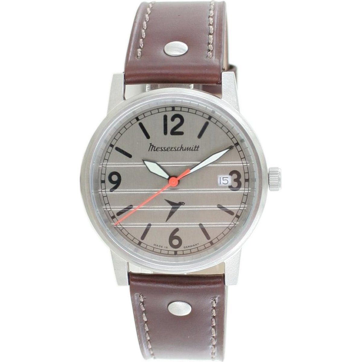 Hersteller:Messerschmitt ModellNr :M-18-2 / BFW-M18 Zifferblatt:Analog, mit Messerschmitt Logo Gehäuse:Edelstahl satin, Durchmesser: ca. 38,5 mm, Höhe ca. 10,0 mm Gehäuseboden:Edelstahlboden mit Herstellerlogo, Armband: Lederarmband braun, Dornschließe Breite: ca. 20 mm Длина d. Uhr: ca. 23 cm Dichtheit:10 bar (100 m Wasserdicht) Funktionen / Anzeigen: Made in Germany Mineralglas Sekunden - Minuten und Stundenanzeige Datumsanzeige auf 3 Uhr Quarzwerk Ronda 715 Lieferumfang:Auslieferung in Messerschmitt Box, Bedienungsanleitung