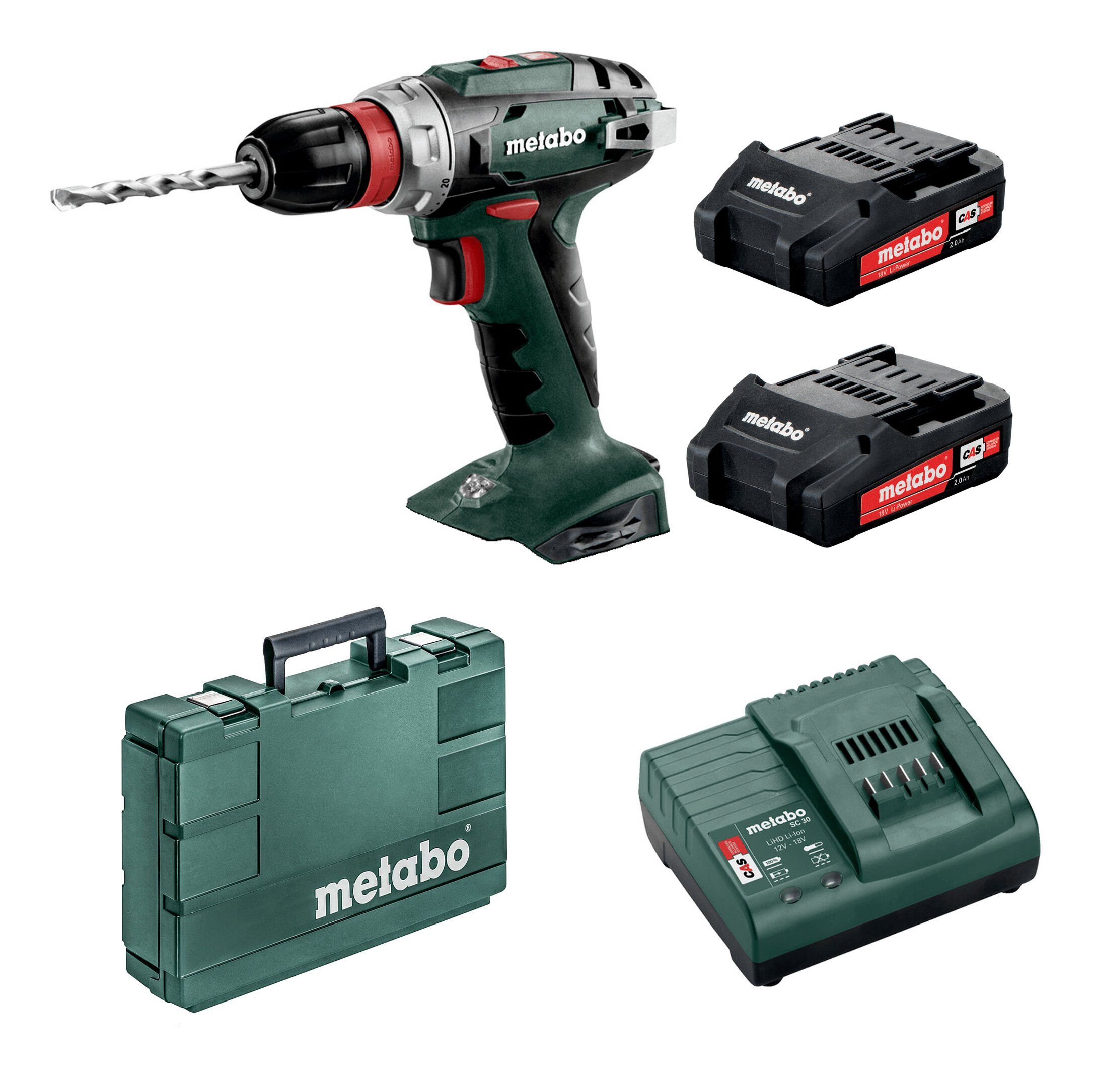 Metabo BS 18 Quick Akku-Bohrmaschine 2 x 2 Ah Li-Ion im Kunststoffkoffer