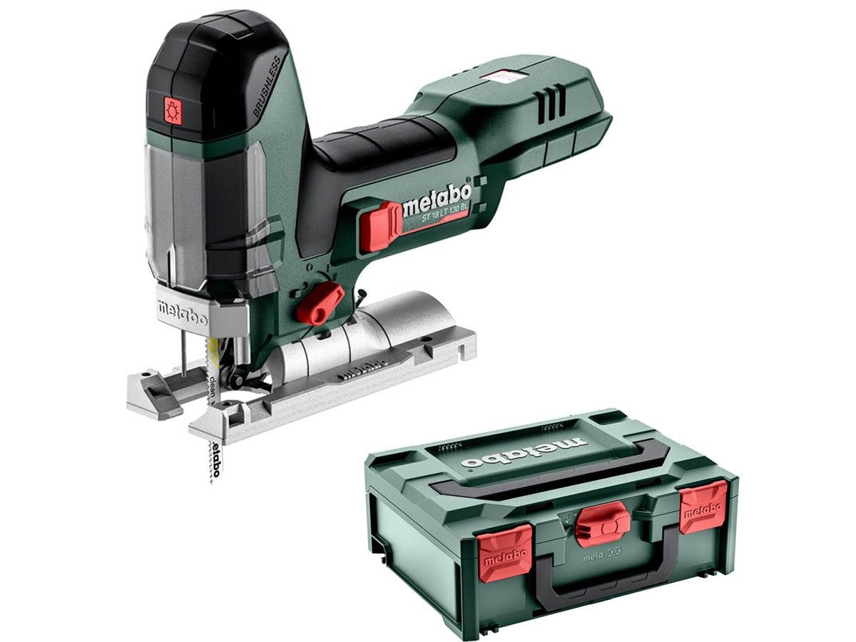 Lieferumfang | 1x ST 18 LT 130 BL 1x Absaugstutzen 1x Schutzglas 1x Schutzplatte Kunststoff 1x Spanreißschutz-Plättchen 2x Stichsägeblätter 1x Sechskantschlüssel 1x metaBOX 145 L |
