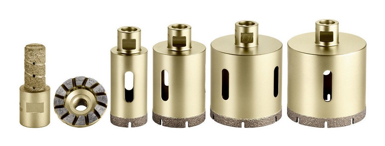 Set beinhaltet | je 1 x Ø 35 mm, 40 mm, 50 mm, 68 mm + Diamantfräsfinger 20 mm + Diamantschleiftopf 50 mm |