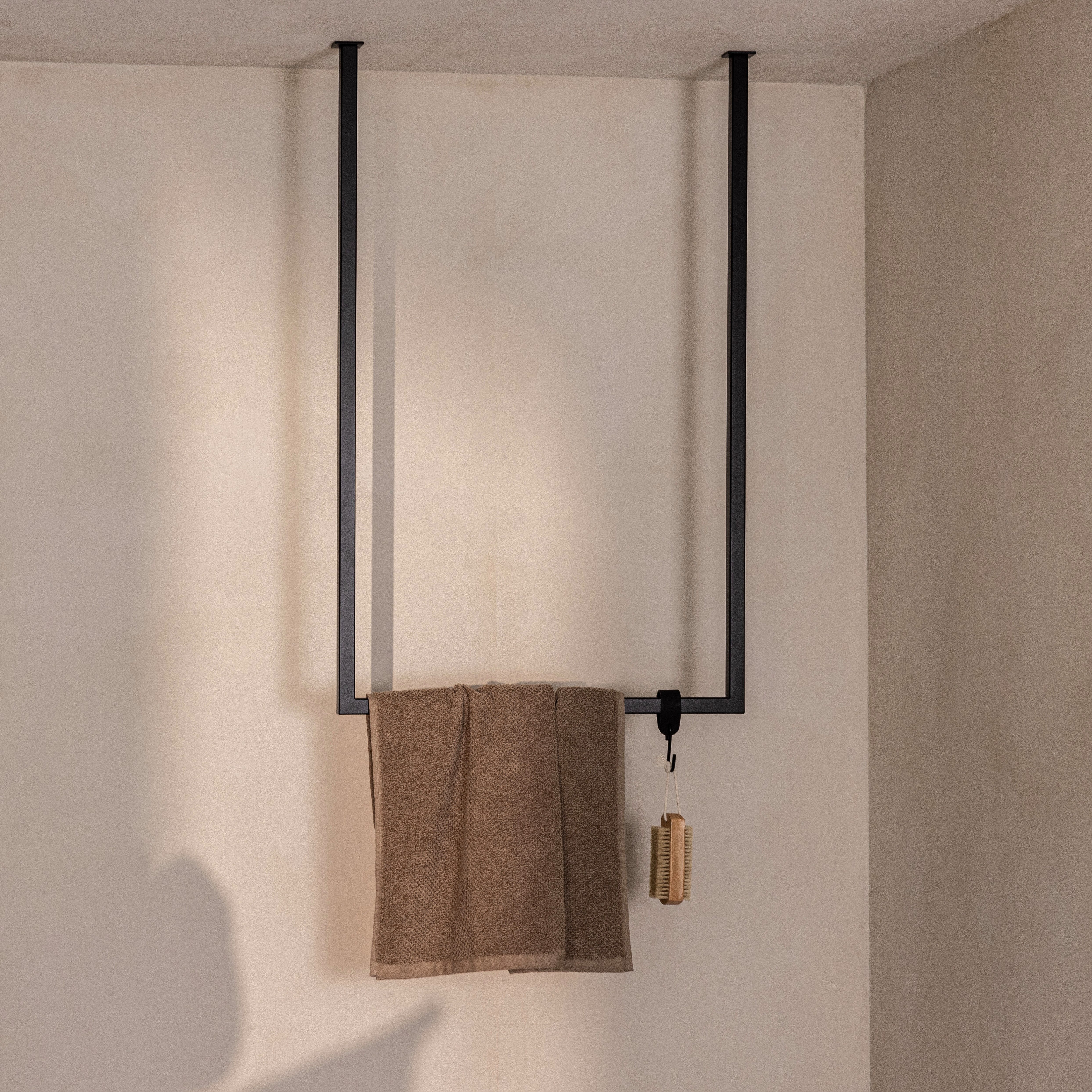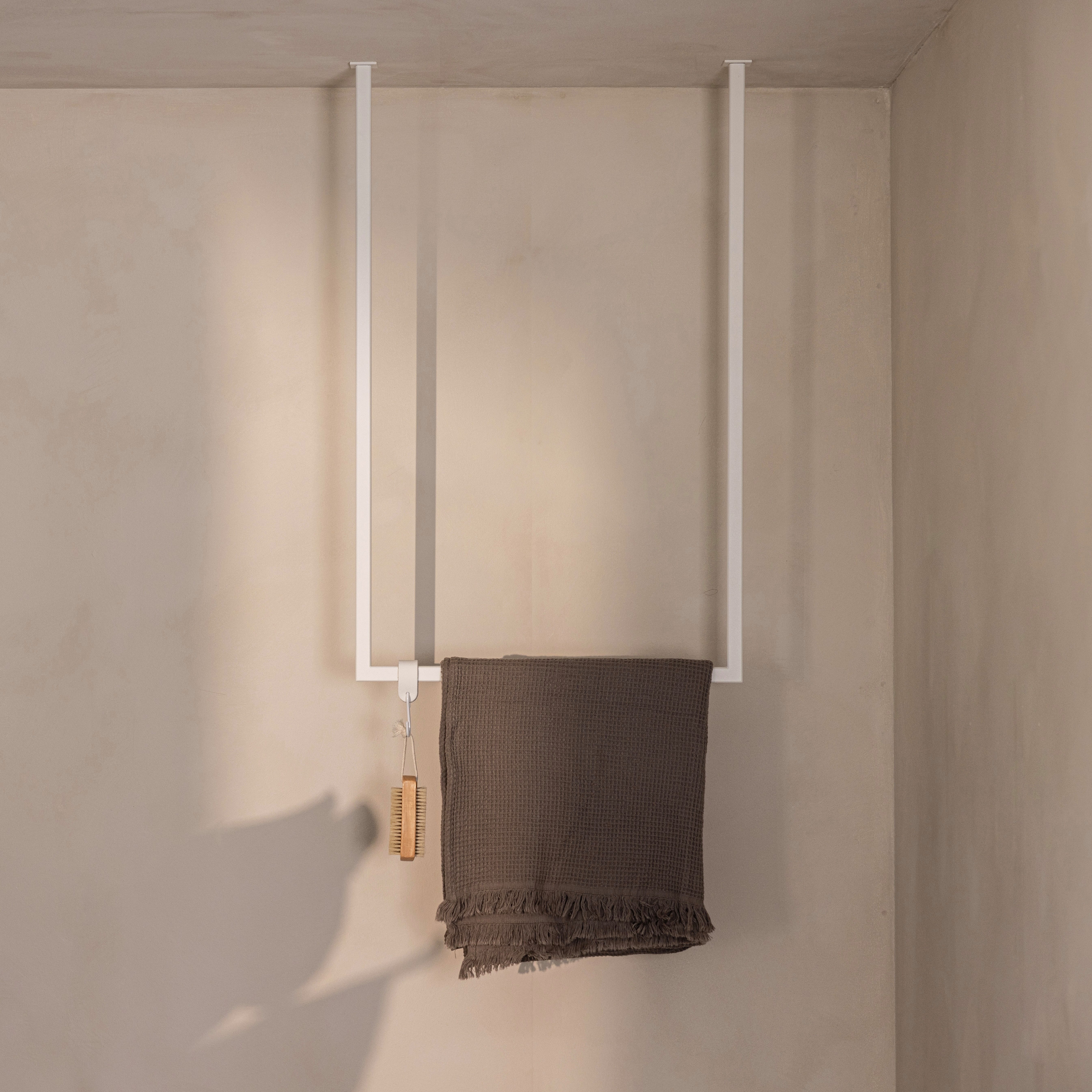 Unser Handtuchhalter TENSI bietet hier eine praktische Lösung. Er lässt sich über der Badewanne oder neben der Dusche anbringen. Dank seines minimalistischen Designs passt sich der Handtuchhalter nahtlos jedem Einrichtungsstil an. Das Beste daran: Das spezielle Befestigungssystem gewährleistet, dass keine Schrauben an der Decke sichtbar sind.