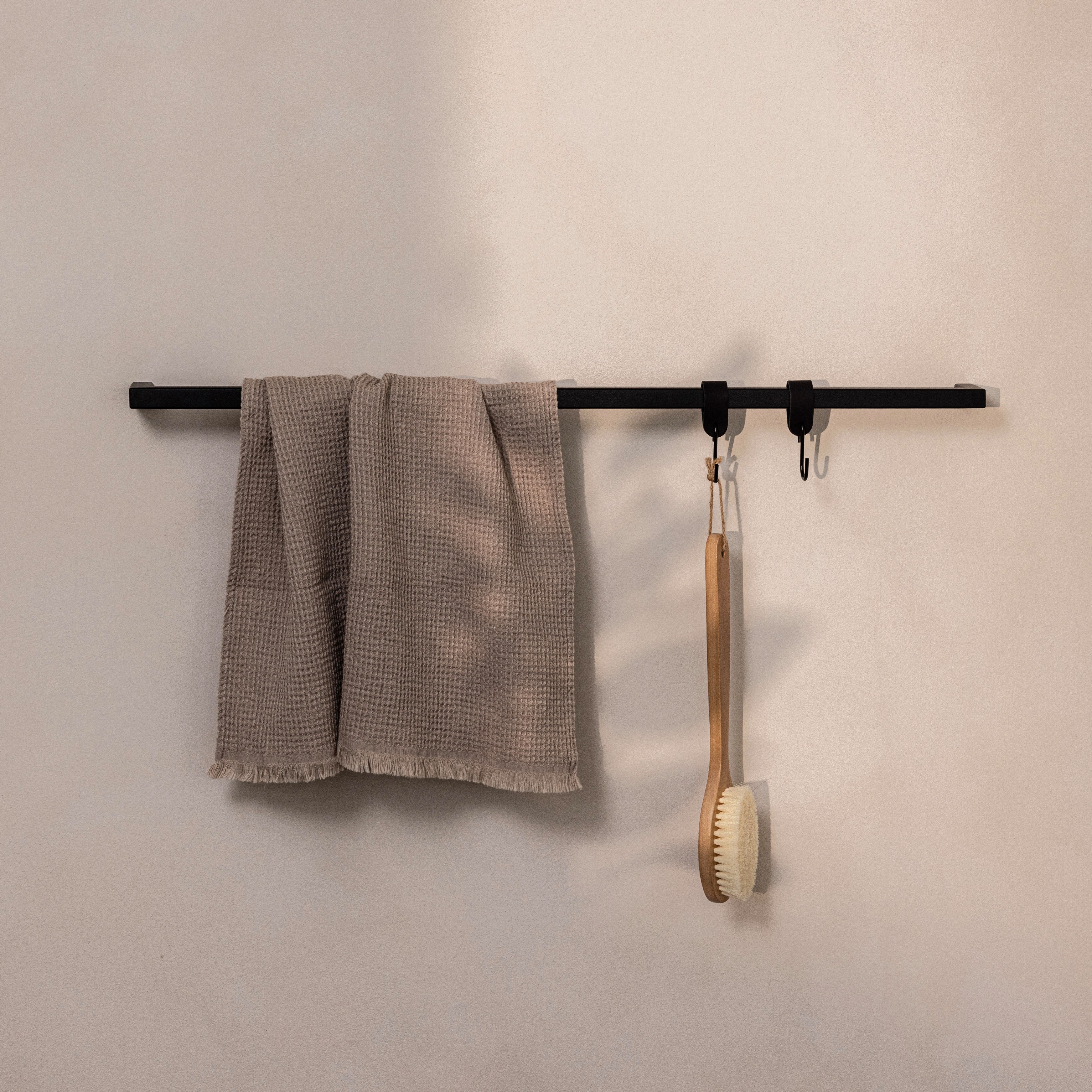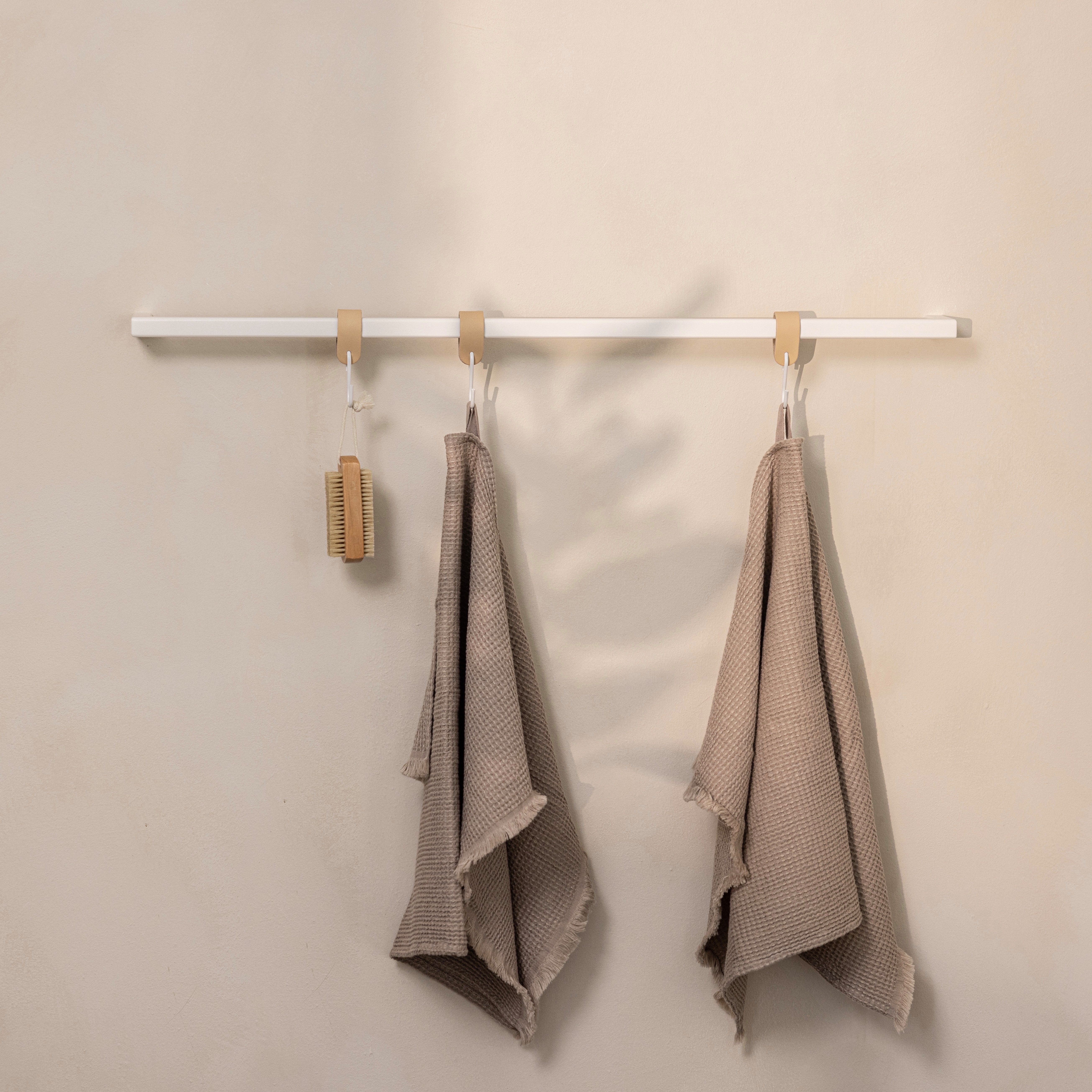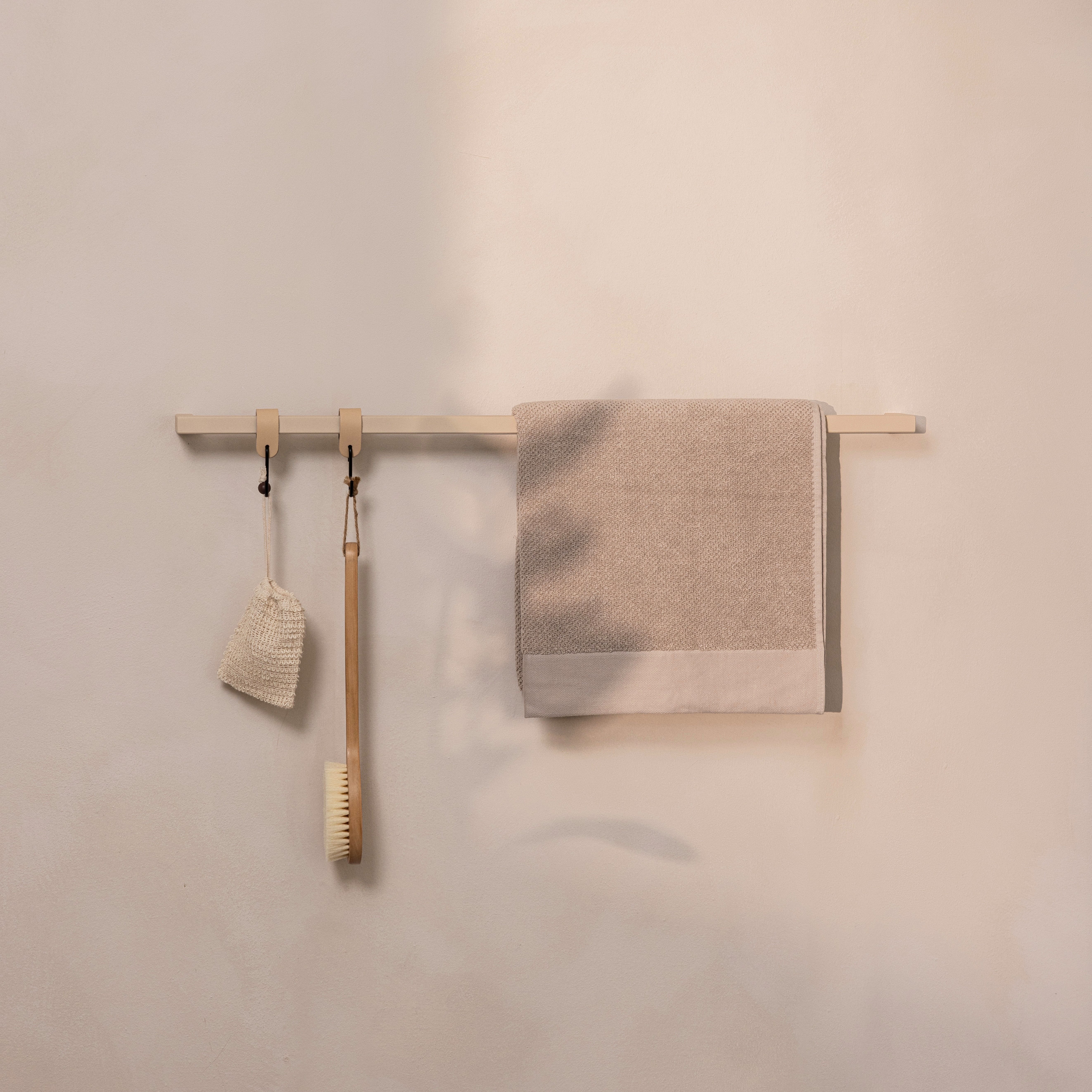 Das abgebildete Zubehör ist nicht im Lieferumfang enthalten. Im Lieferumfang enthalten ist lediglich der Handtuchhalter. Die Leder S-Haken können separat in unserem Меню erworben werden.