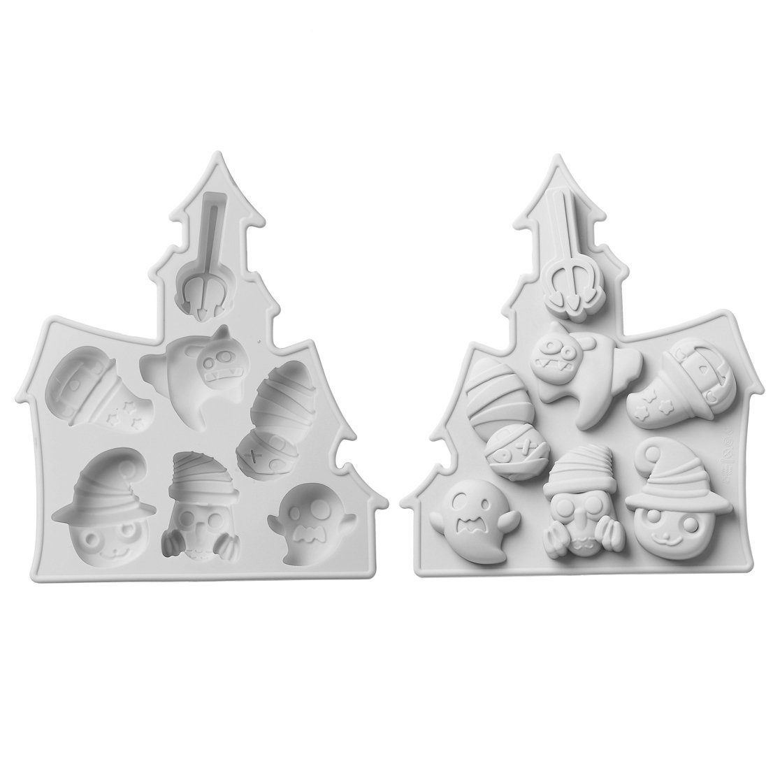 Mit dieser Horror House Silikonform für sieben verschiedene Halloween-Figuren gelingen Dir im Handumdrehen eindrucksvolle Kreationen. Durch den großen Temperaturbereich kannst Du sie gleichermaßen zum Frieren oder Backen benutzen. Du kannst schaurige Eiswürfel für deine Halloween-Drinks damit herstellen, aber auch heiße Flüssigkeiten wie geschmolzene Schokolade oder leckeren Pudding einfüllen. Zaubere schnell und einfach echte Hingucker für deine Halloweenparty!