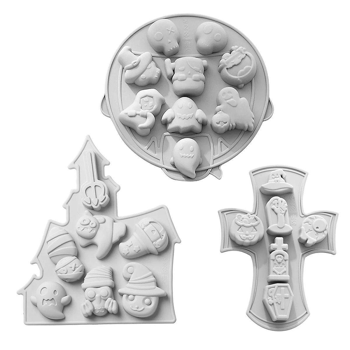Mit diesem 3er Halloween Silikonformen-Set gelingen Dir im Handumdrehen eindrucksvolle süß-gruselige Halloween Kekse, Kuchen oder Eiswürfel. Mit Schokolade befüllt kannst du auch beeindruckende Pralinen oder Kuchendekorationen zaubern.Durch den großen Temperaturbereich kannst Du sie gleichermaßen zum Frieren oder Backen benutzen. Du kannst schaurige Eiswürfel für deine Halloween-Drinks damit herstellen, aber auch heiße Flüssigkeiten wie geschmolzene Schokolade oder leckeren Pudding einfüllen. Zaubere schnell und einfach echte Hingucker für deine Halloweenparty!