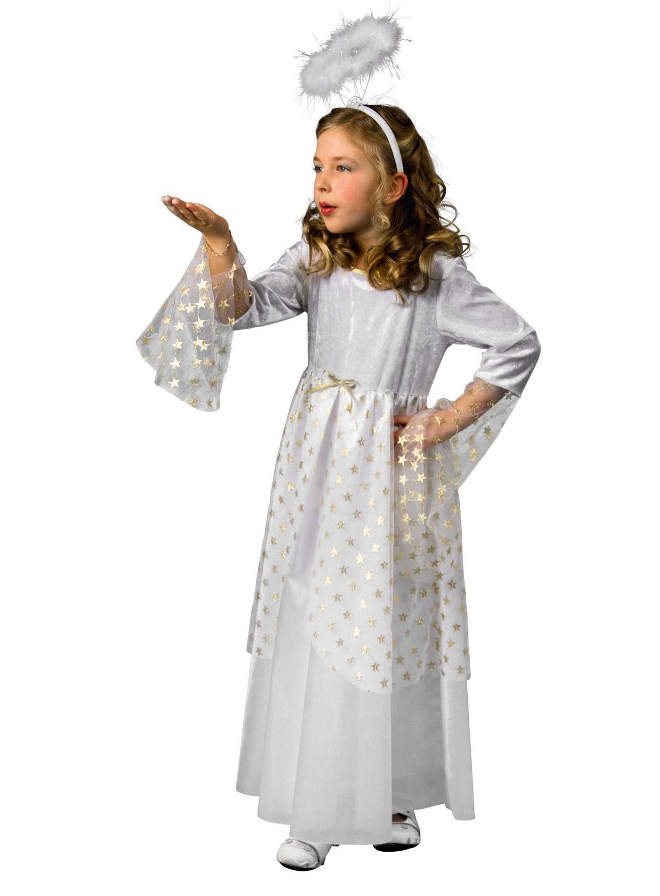 Ausstattung | - Engelskleid für Kinder einteilig- Farbe: weiß- Überrock und weite Ärmel aus weißem Tüll mit goldfarbenen Sternenaufdruck- ohne sonstige Kostümteile und Accessoires |