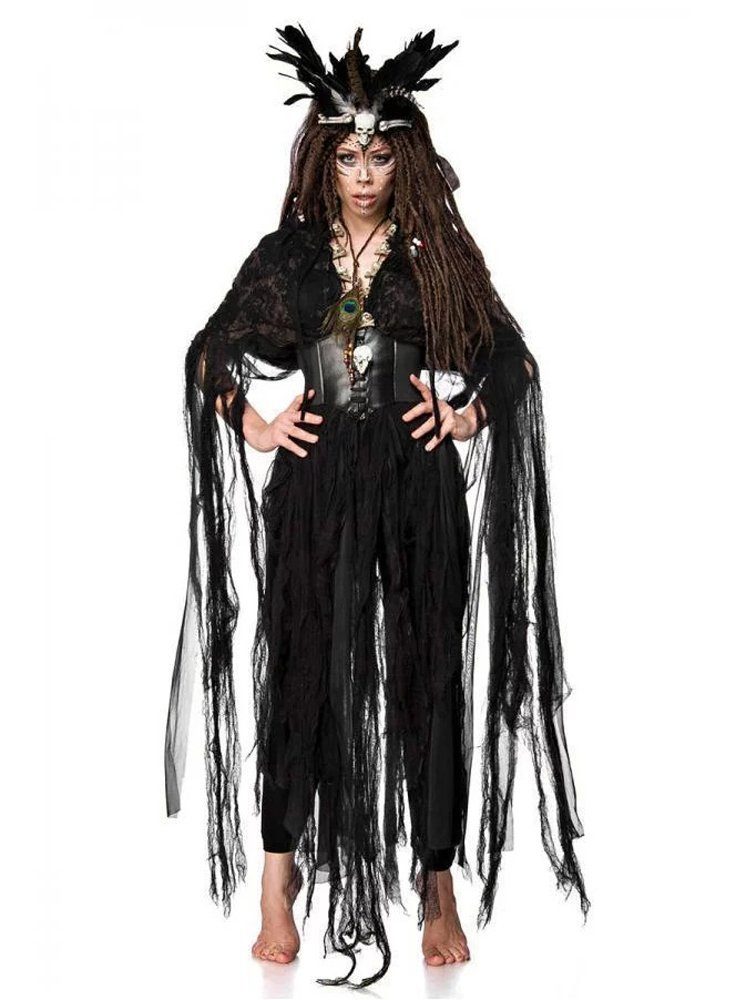 Ausstattung | - Voodoohexe Kostüm fünfteilig- mit Fetzencape- mit Gürtel- mit Kette- mit Krone- mit Leggings |