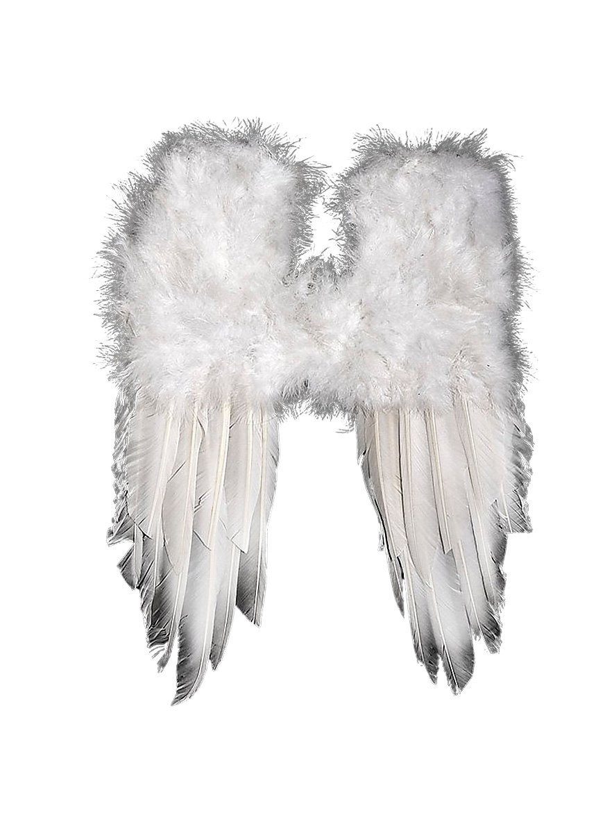 Всеn Engeln, Dämonen und sonstigen flugfähigen Wesen seien diese kleinen Federflügel ans Herz (bzw. an die Schultern) gelegt. Wer ohne protzige Schwingen auskommt oder gerade erst flügge geworden ist, der entscheidet sich für dieses schnittige Modell. Da lassen sich die Flatter-Extremitäten zur Not auch unterm Mantel verstecken. Die kleinen Federflügel weiß lassen sich mit stufenlos verstellbaren Schulterriemen mit Klettverschluss bequem anpassen. Im oberen Teil wurden weiche Daunen verwendet, im unteren lange Deckfedern.