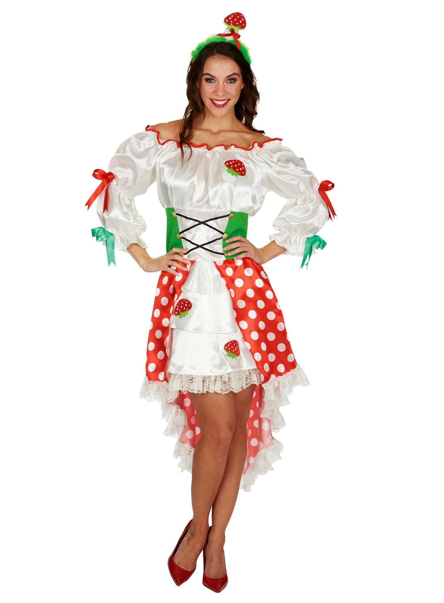 Ausstattung | - Glückspilz Kostüm einteilig- mit zahlreichen Applikationen- mit einer Schnürung im Vorderteil verziert- schulterfrei- gestufter Rockteil mit Spitzensaum - ohne sonstige Kostümteile und Accessoires |