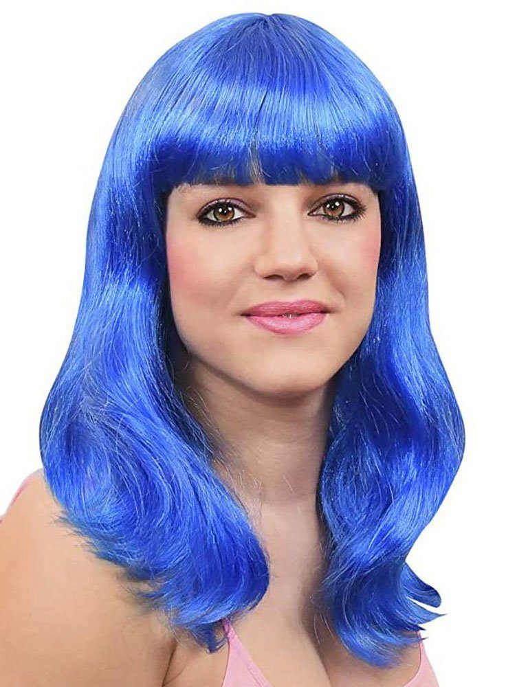 Metamorph Kostüm-Perücke Langhaarfrisur blau - Kostüm Perücke für Fasching, Ponyperücke in knalliger Farbe