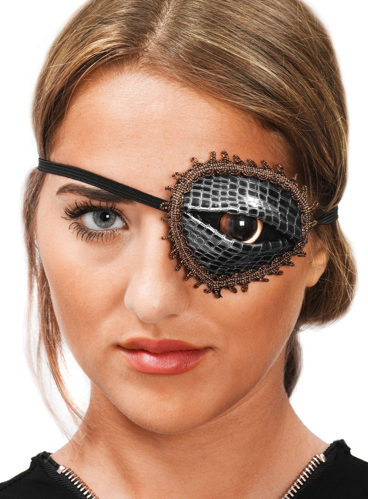 Drachenauge sei Wachsam: Verblüffende Augenklappe mit einem plastisch nachgebildeten Monsterauge und bronzefarbener Umrandung. Ein elastisches Gummiband sorgt für bequemen Sitz.